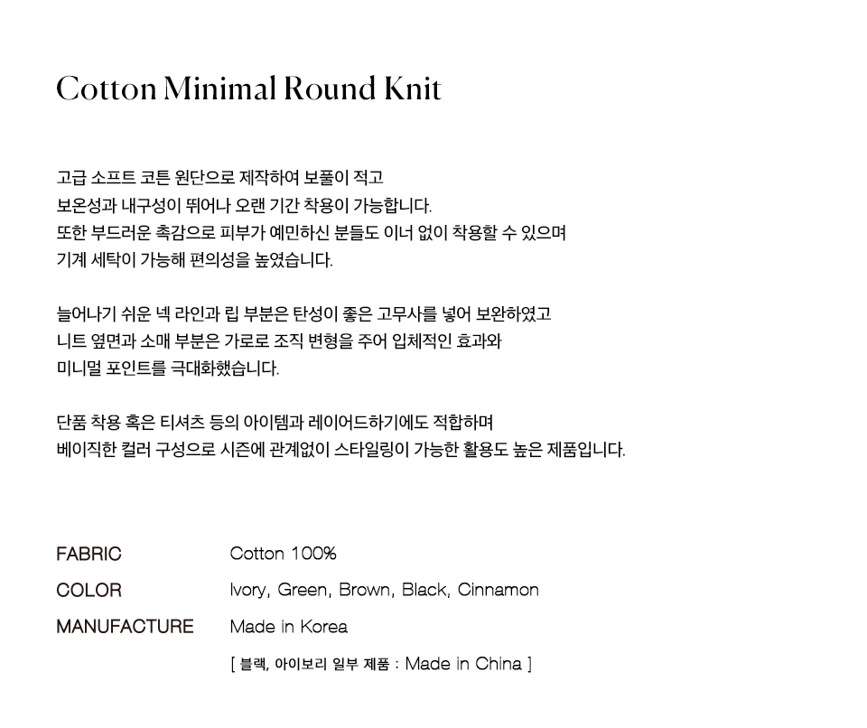 코튼 미니멀 라운드 니트 IVORY