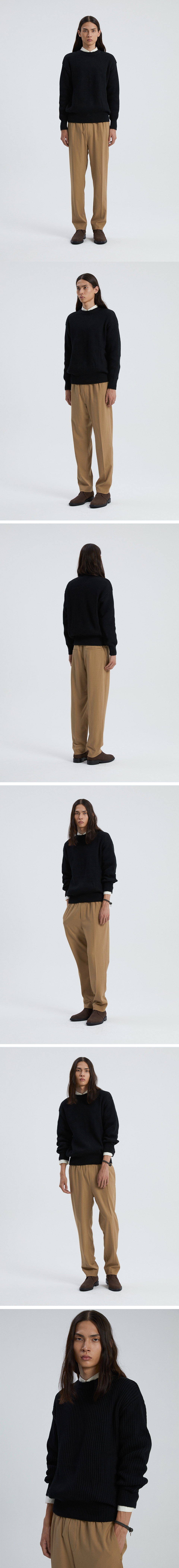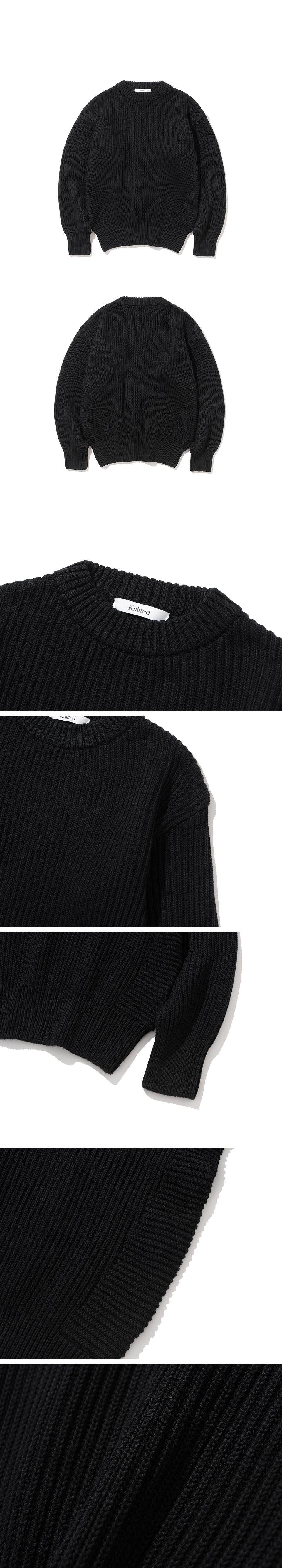 코튼 미니멀 라운드 니트 BLACK