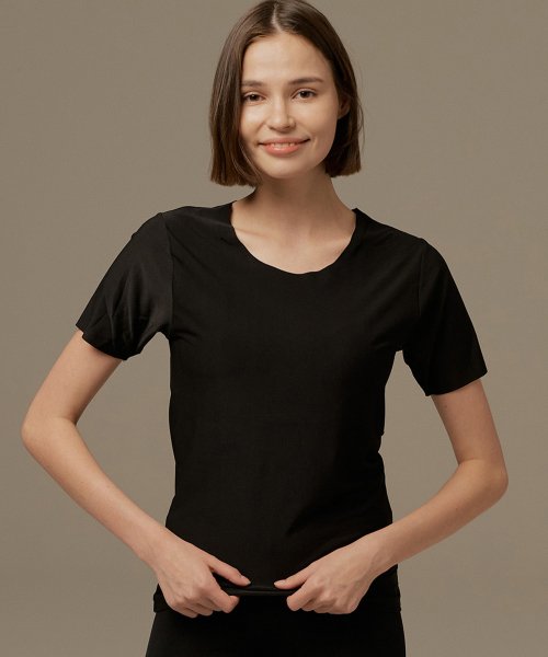 베리웜 무봉제 기모반팔 여성용 - 블랙