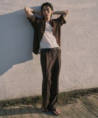 썸머울 투 턱 와이드 히든 밴딩 슬랙스 [브라운]