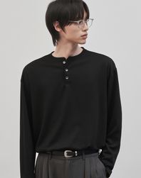 레스티드 세미 오버핏 헨리넥 니트 [블랙]