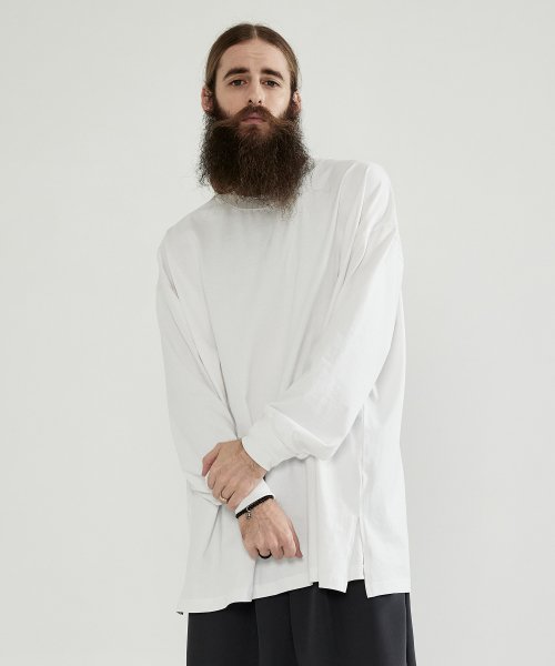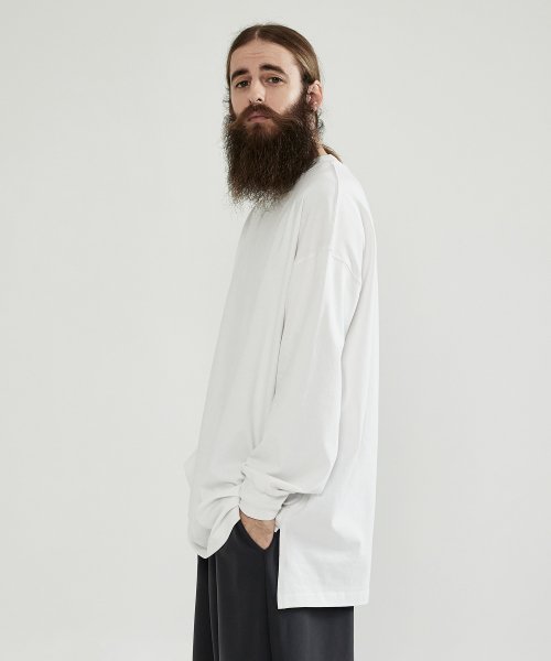 CB 오버핏 무지 라운드 긴팔티 (화이트)