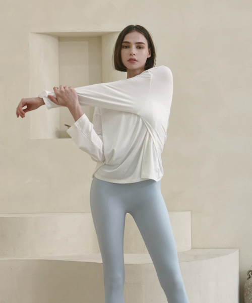 여성 요가복 DEVI-T0086-아이보리 필라테스 웨이비 꼬임 커버업