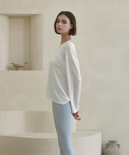 여성 요가복 DEVI-T0108-화이트 필라테스 헨리넥 7부 티셔츠