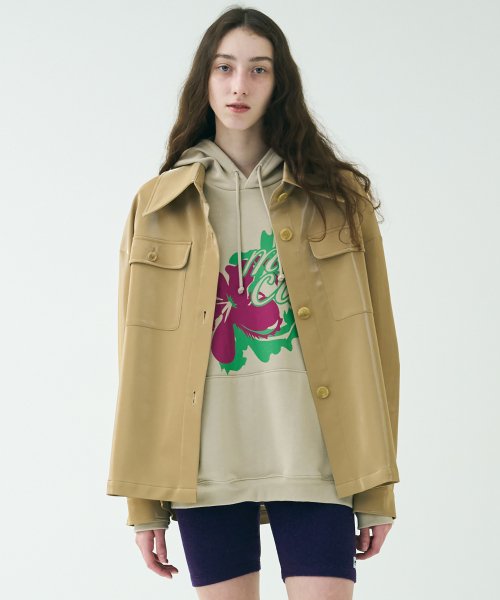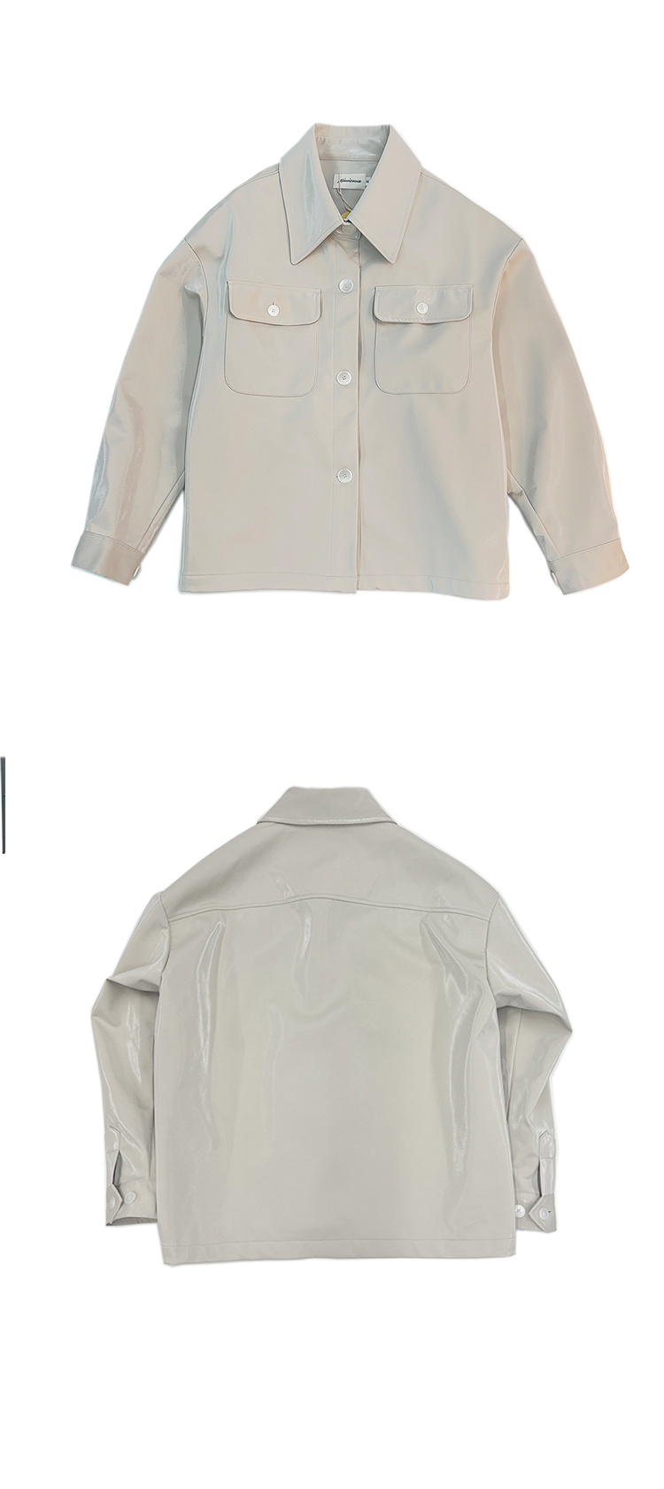 비건 레더 소재의 오버사이즈 셔츠 자켓입니다.