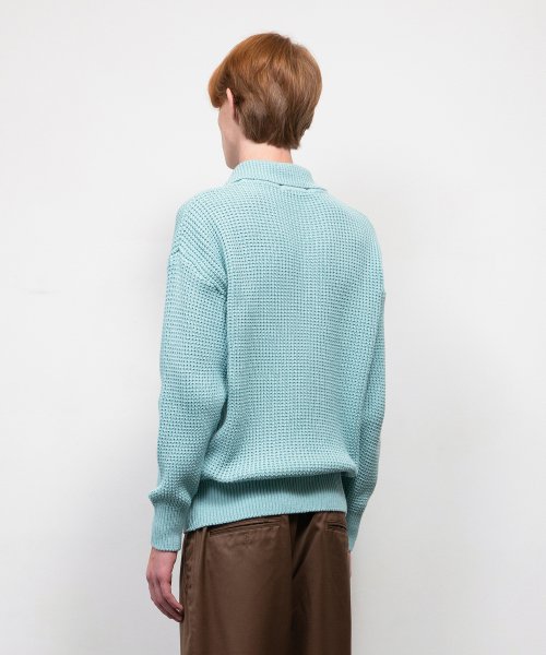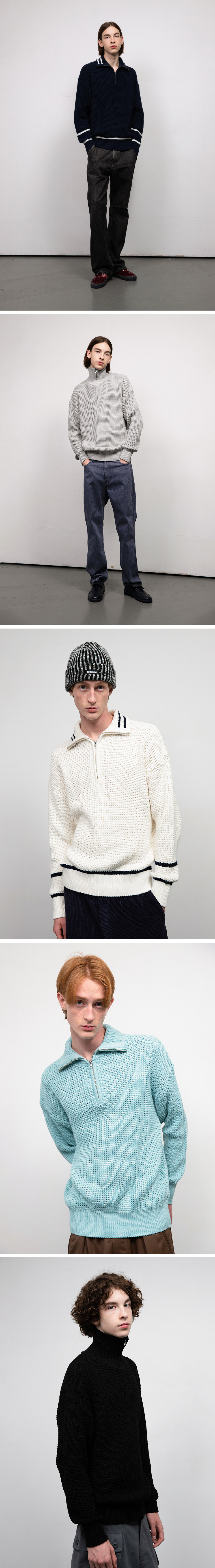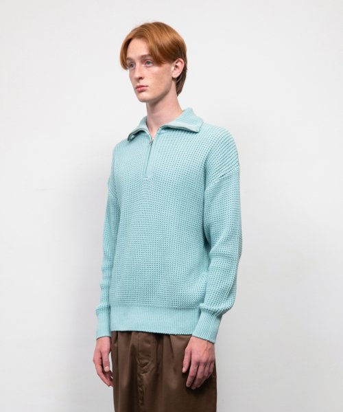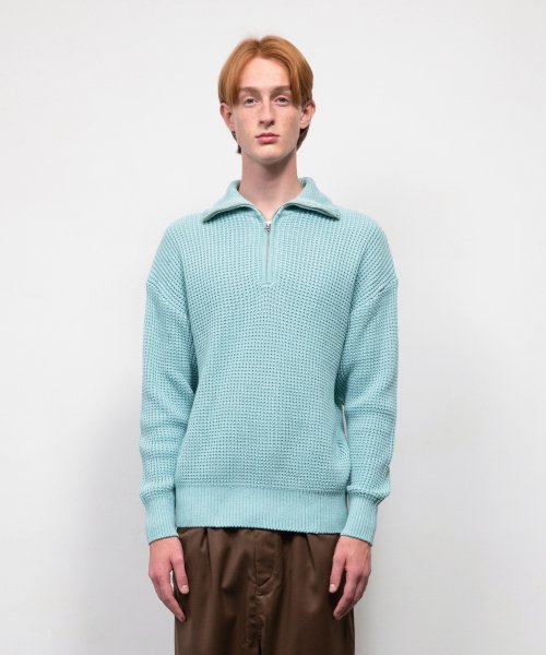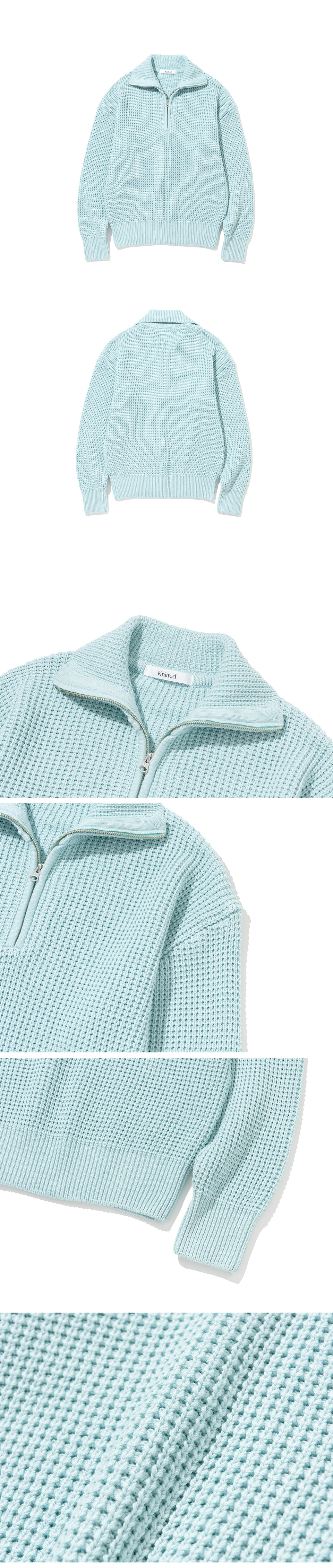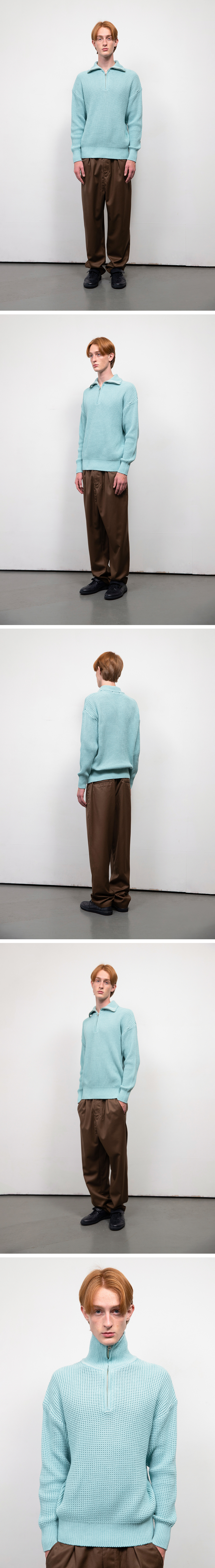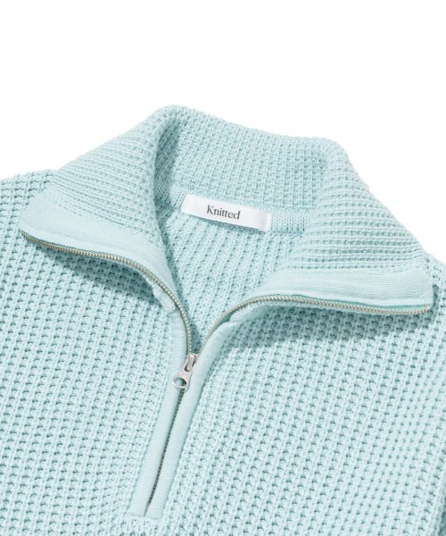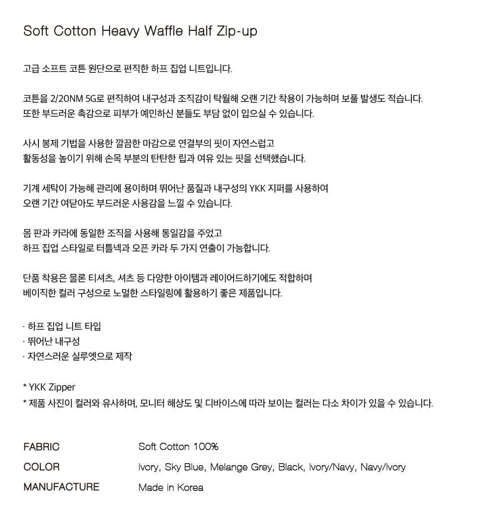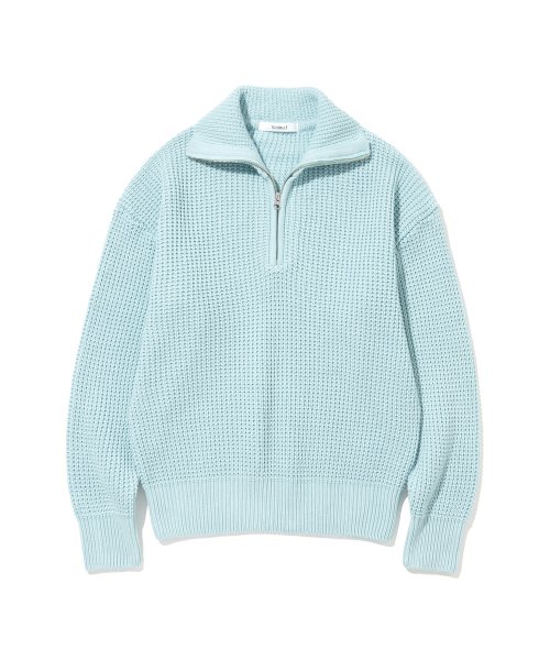 소프트코튼 헤비 와플 하프 집업 니트 SKY BLUE