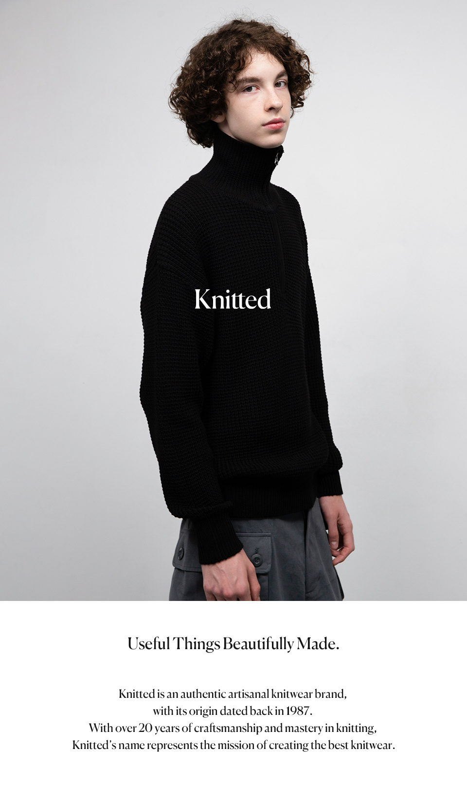 니티드(KNITTED)는 'Useful things beautiful made(유용한 아름다운 것들을 만들자)'라는 슬로건으로, 제작 기반의 우수한 품질력으로 승부하는 브랜드입니다.