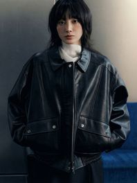 페이크 레더 포켓 블루종 점퍼 [BLACK] / GF1LJK502