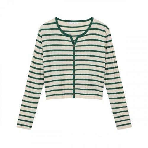 하트 스트라이프 펄 니트 가디건