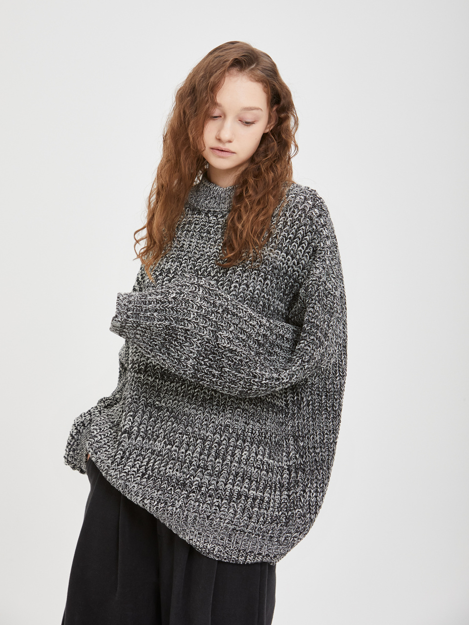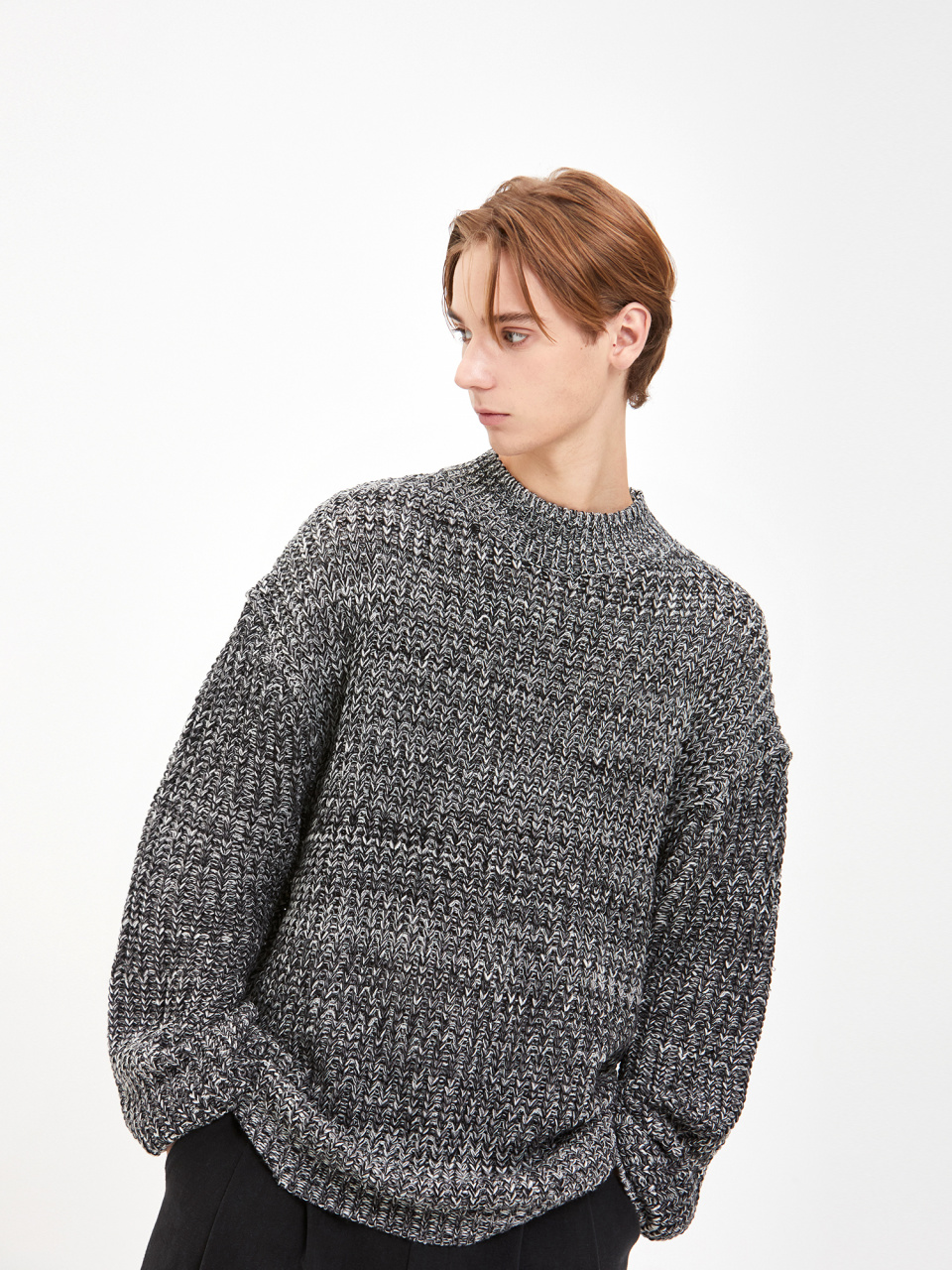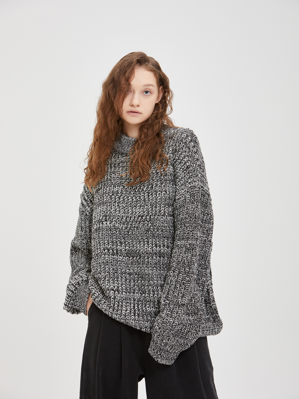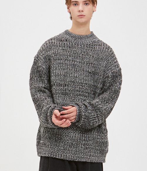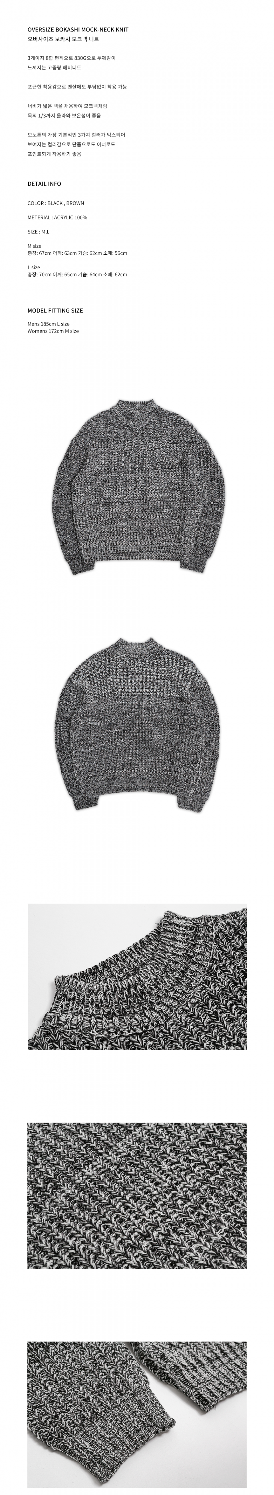 오버사이즈 보카시 모크넥 니트 - 블랙