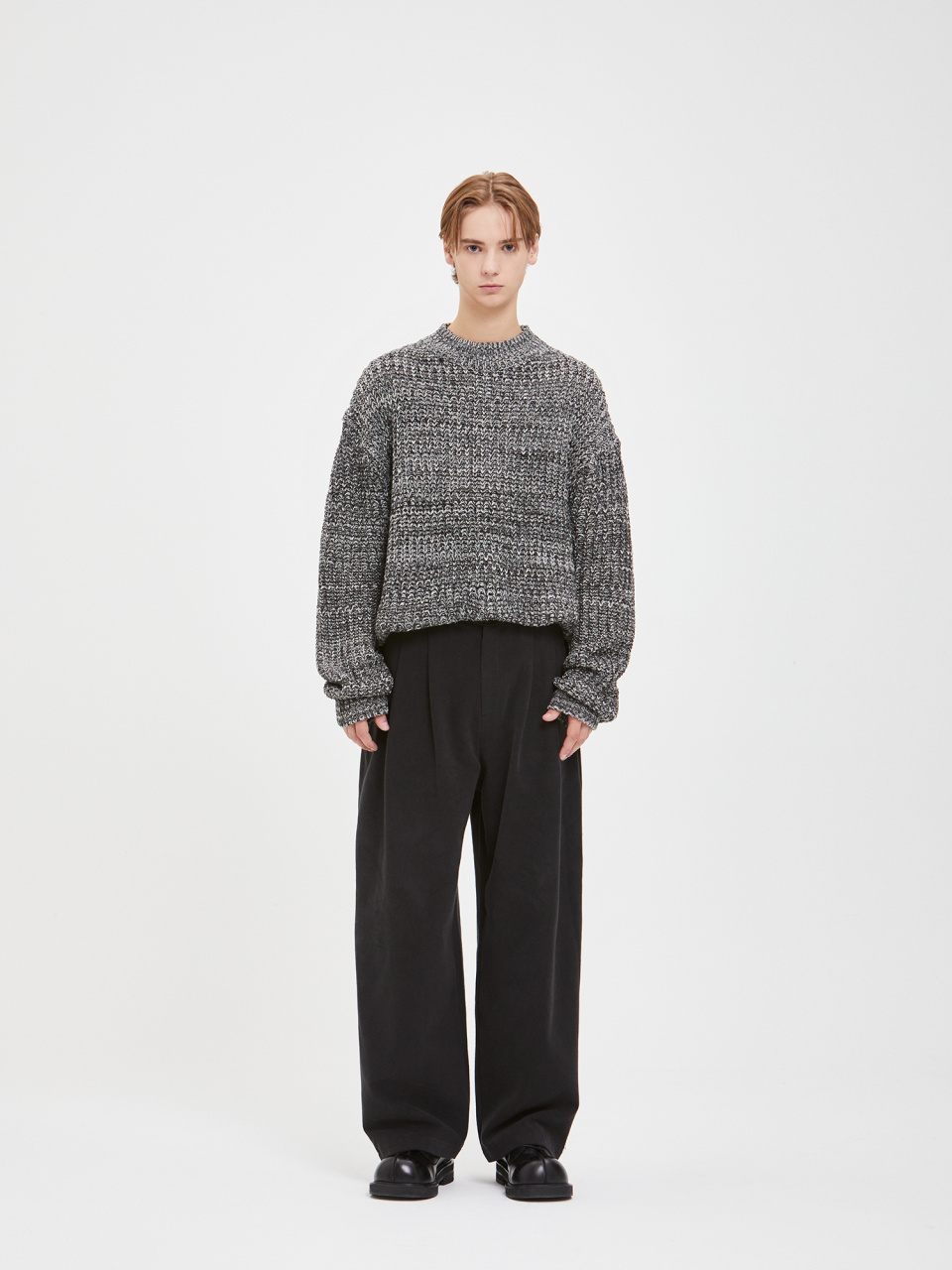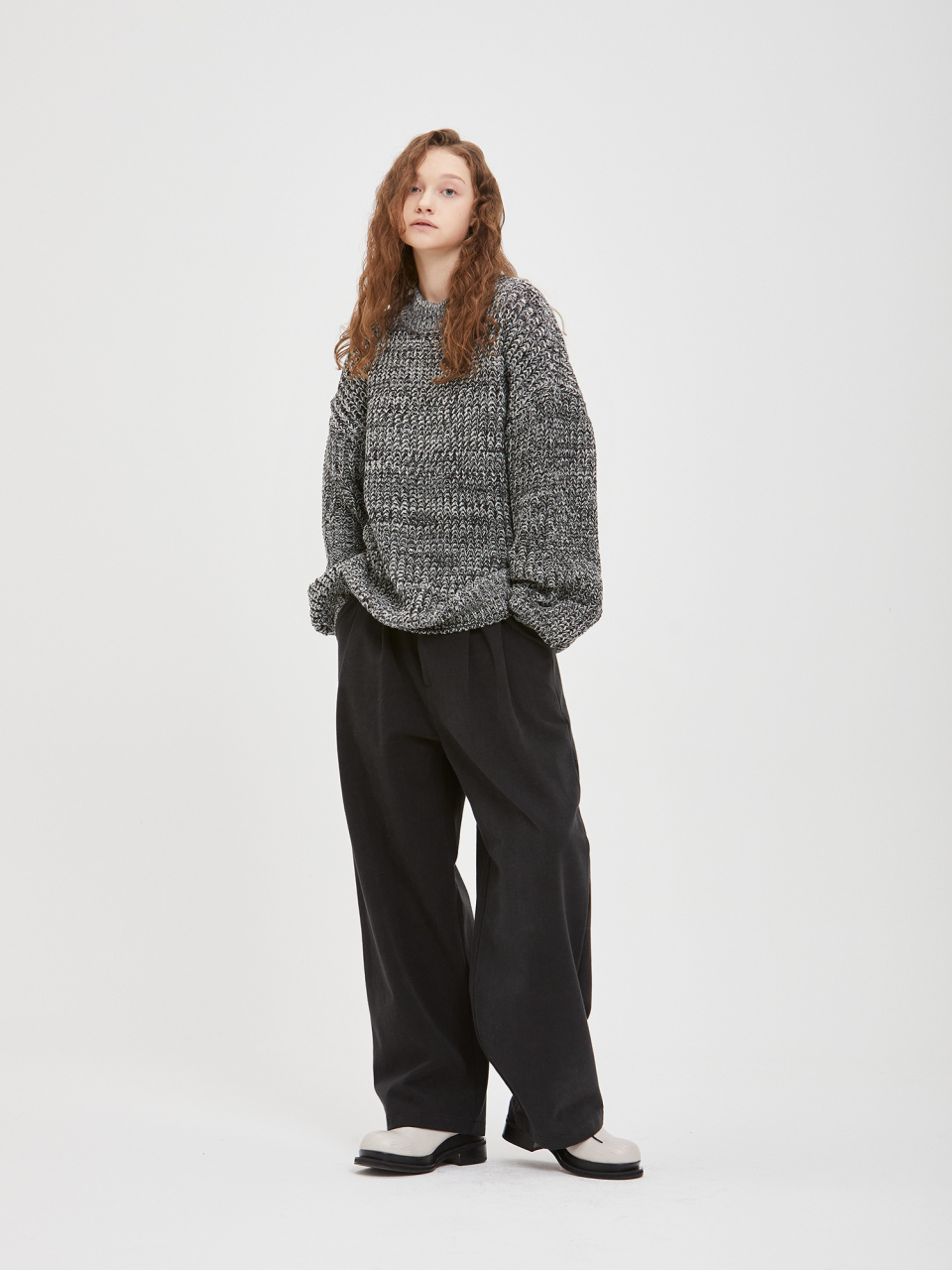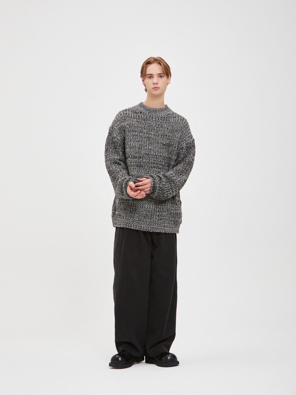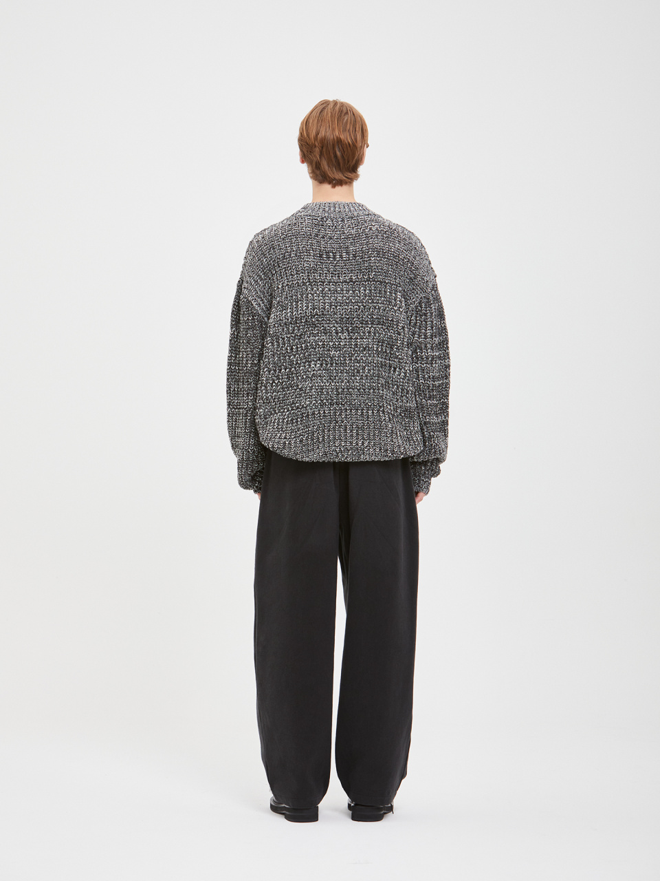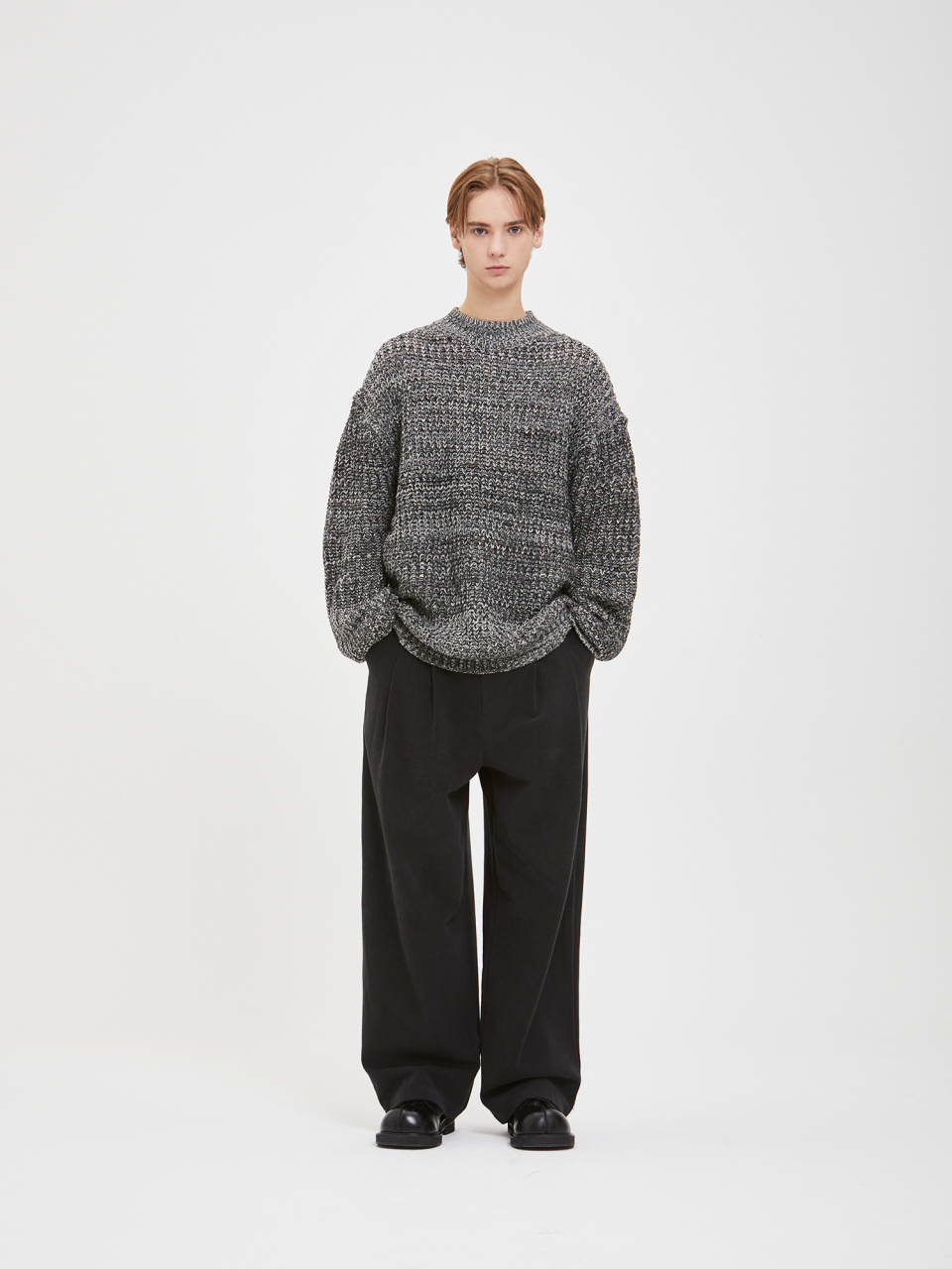 오버사이즈 보카시 모크넥 니트 - 블랙