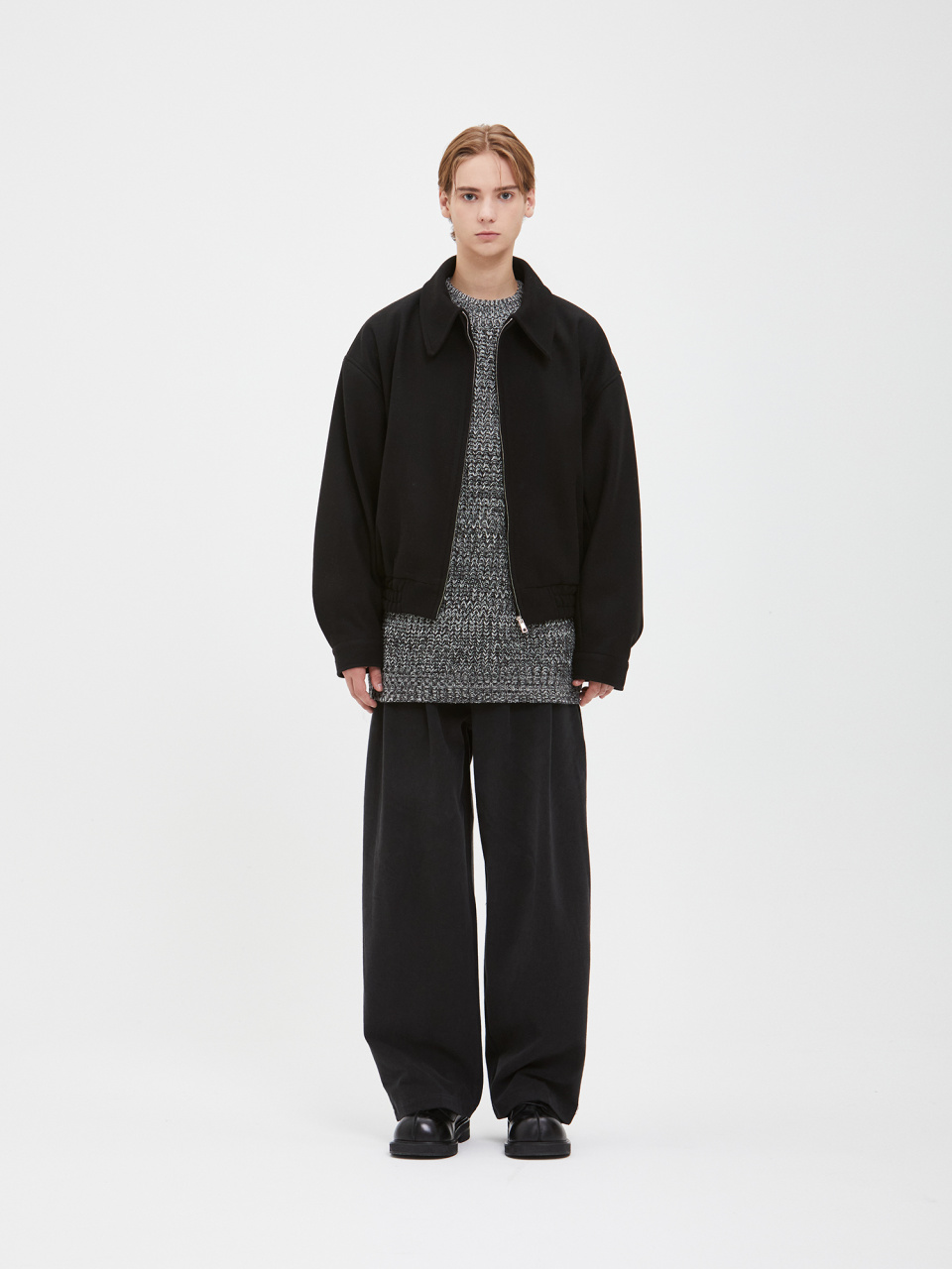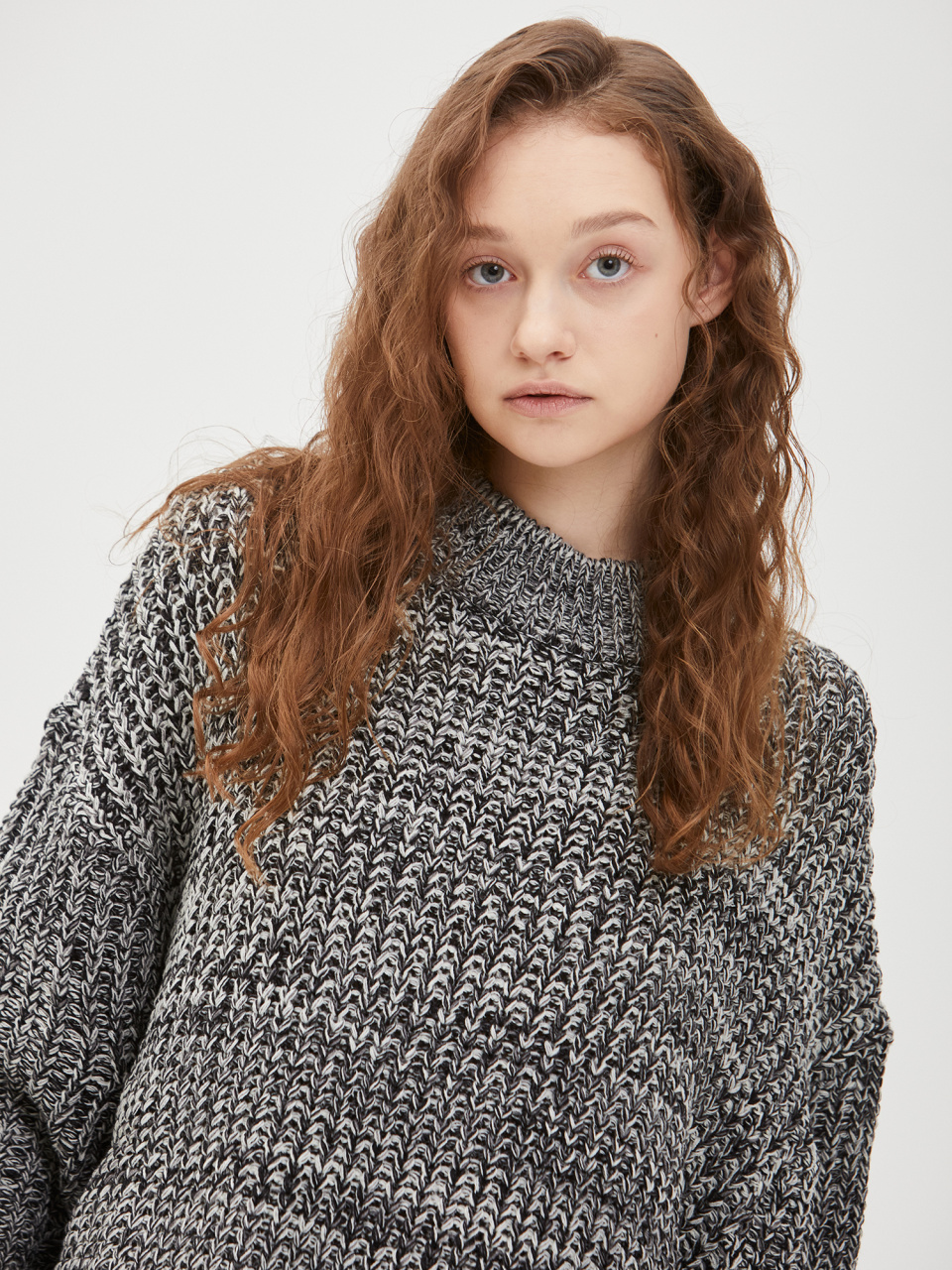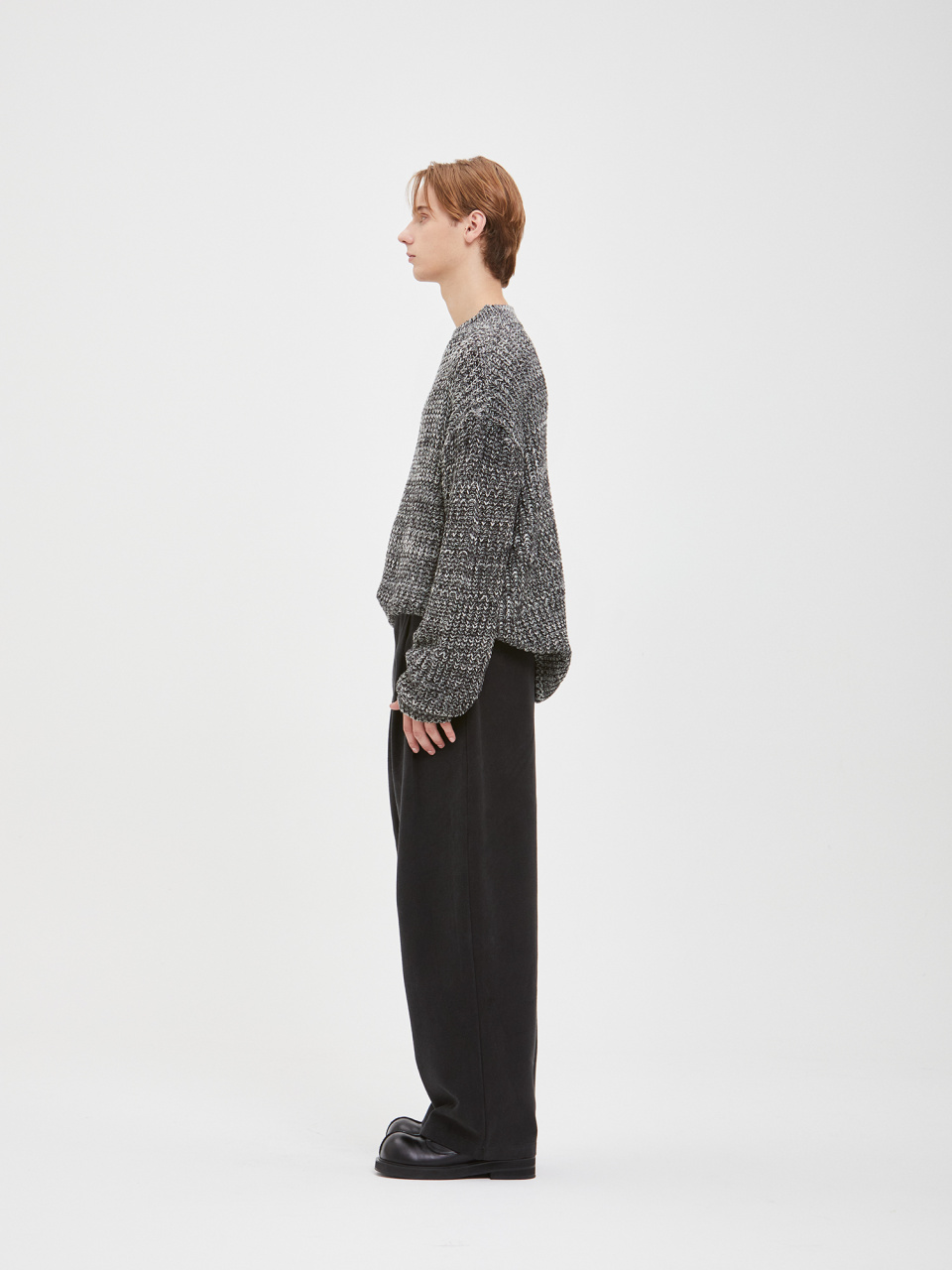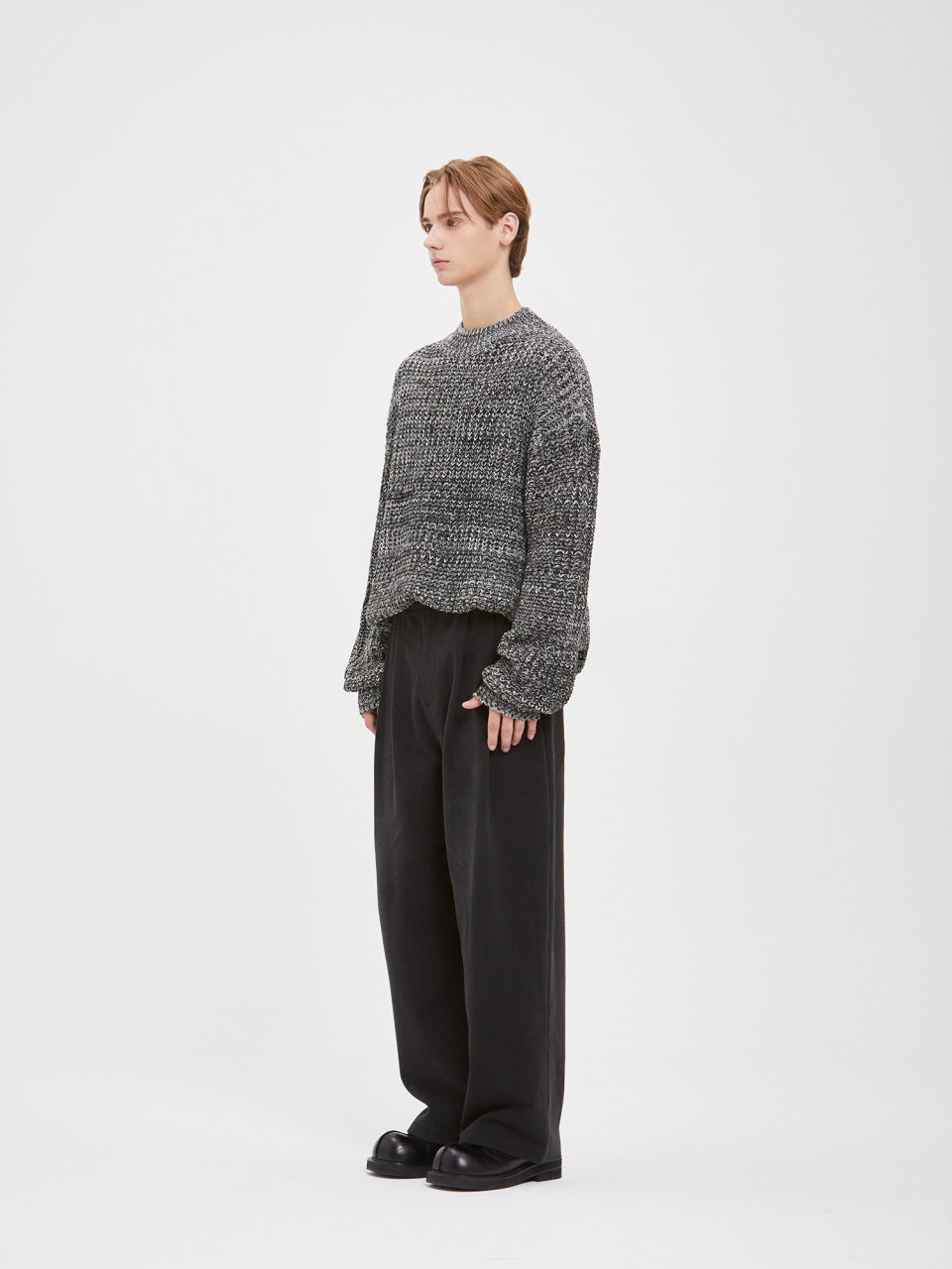 오버사이즈 보카시 모크넥 니트 - 블랙