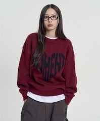 모먼트 하트 니트 - 버건디