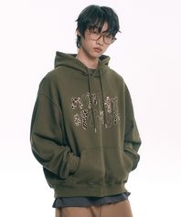 레오파드 아플리케 후드 - 카키