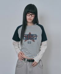 히스 스트라이프 레이어드 크롭 롱슬리브 - 네이비