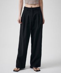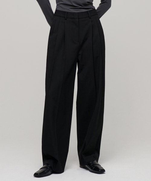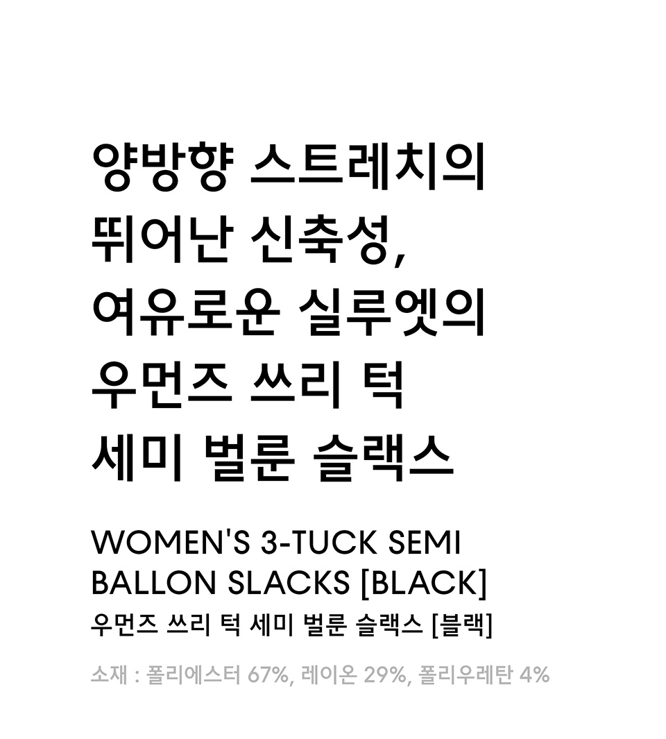 우먼즈 쓰리 턱 세미 벌룬 슬랙스 [블랙]