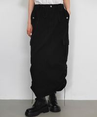 액티브 사이드 포켓 앤드 셔링 롱 스커트