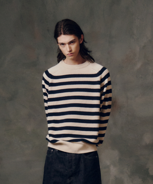 로프 반팔 코튼 니트 3컬러(네이비, 올리브, 오트밀)
