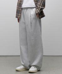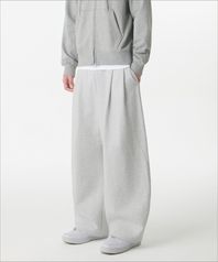 더블 니트 원 턱 와이드 라운지 스웨트 팬츠 [멜란지 라이트 그레이]