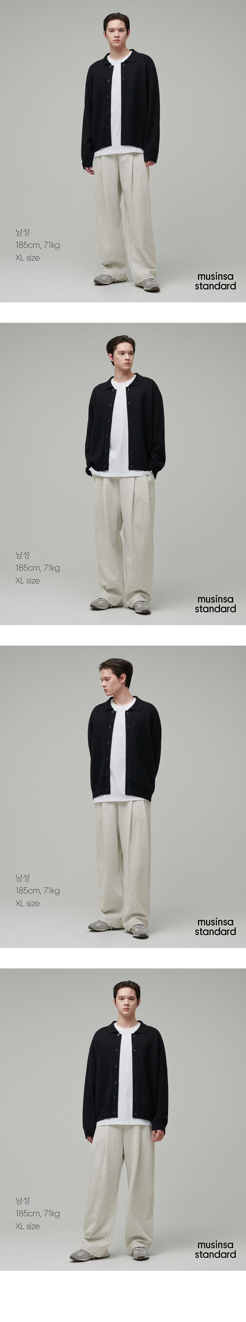더블 니트 쓰리 턱 와이드 라운지 스웨트 팬츠 [블랙]