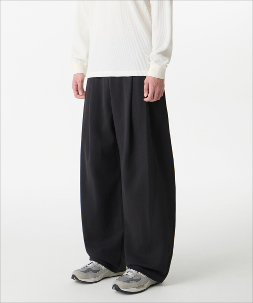 더블 니트 투 턱 와이드 라운지 스웨트 팬츠 [네이비]