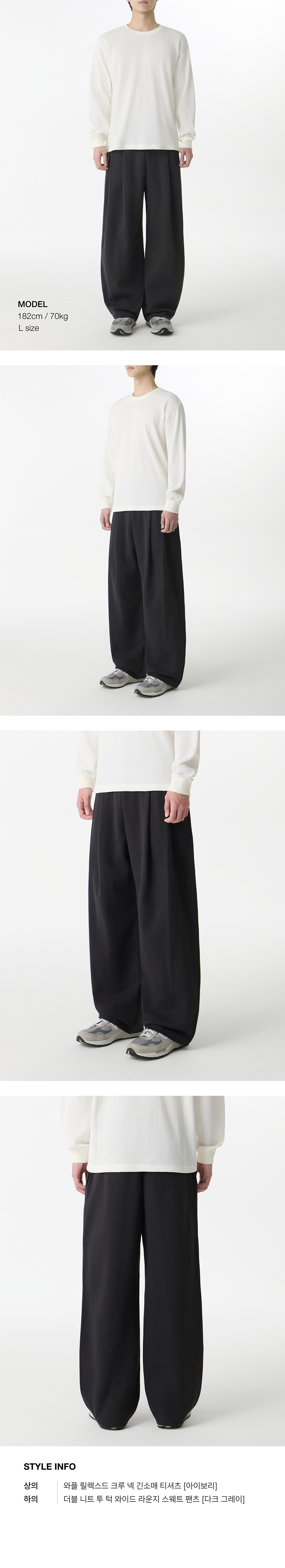 더블 니트 투 턱 와이드 라운지 스웨트 팬츠 [다크 그레이]
