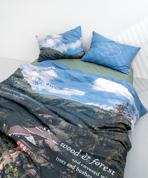 포레스트 포토 레터링 무봉제 옥수수솜 이불베개세트 2컬러