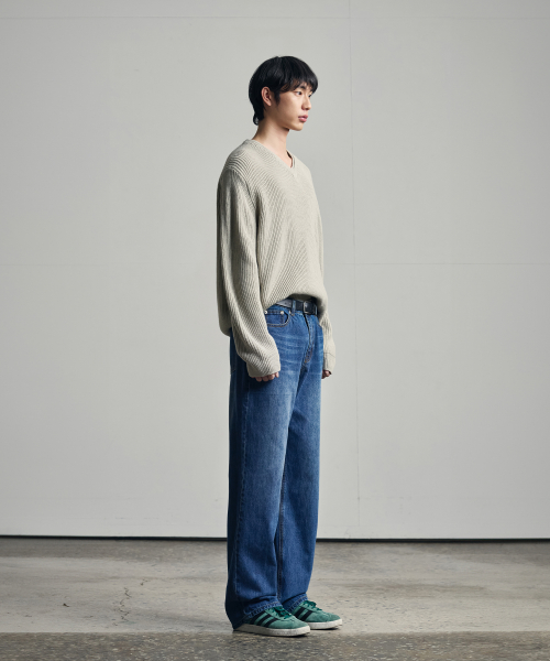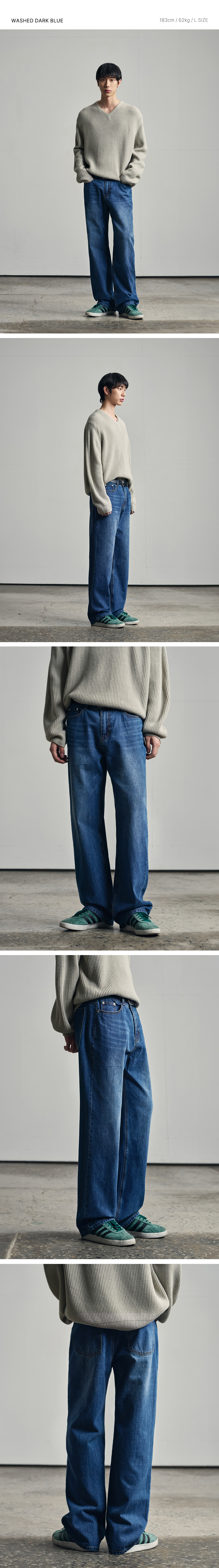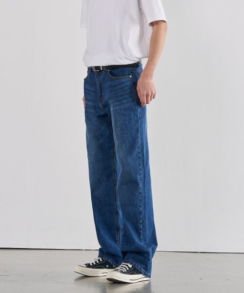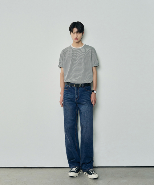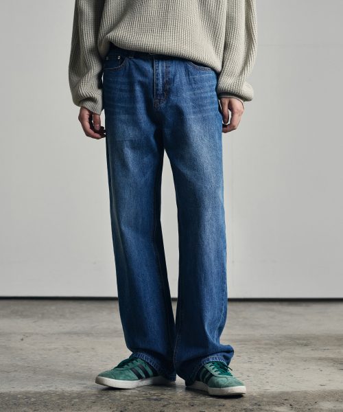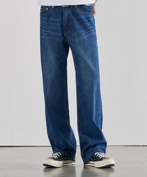세미 와이드 데님 팬츠 [WASHED DARK BLUE]