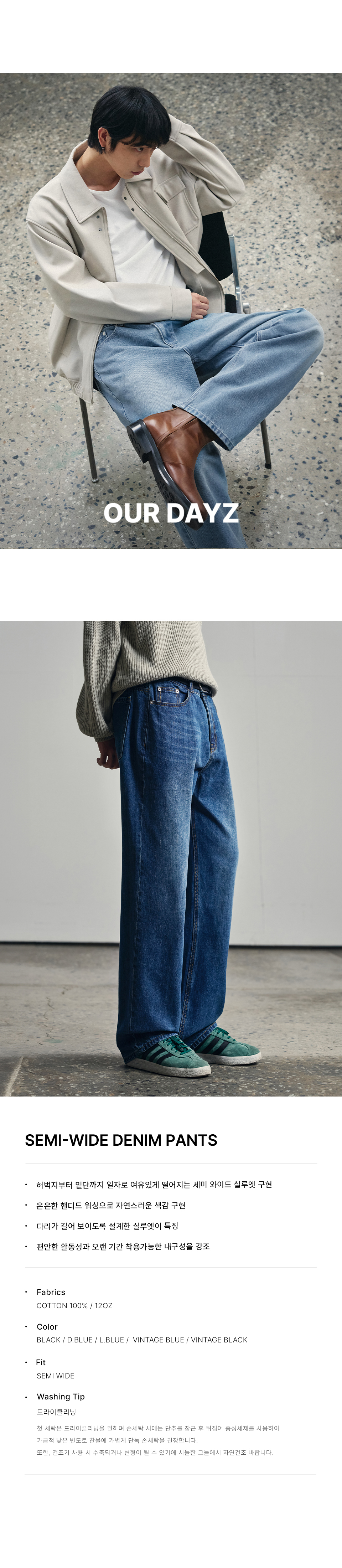 아워데이즈(OURDAYZ)는 편안한 실루엣과 트렌디한 스타일을 전개하는 데님 브랜드입니다. 합리적인 가격과 좋은 품질로 아워데이즈만의 가치를 선보이고자 합니다.