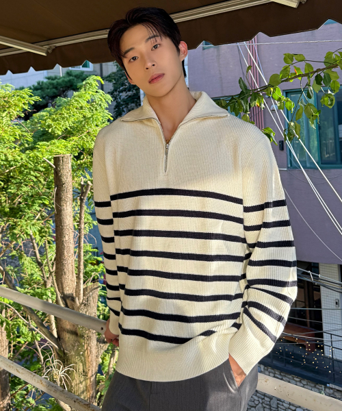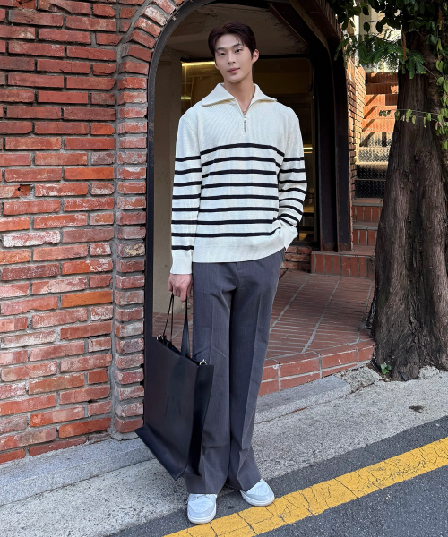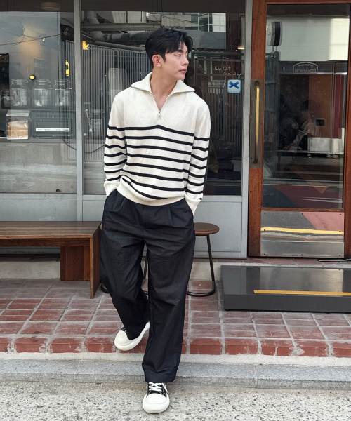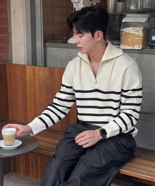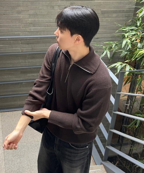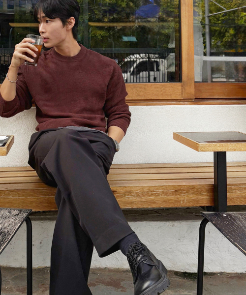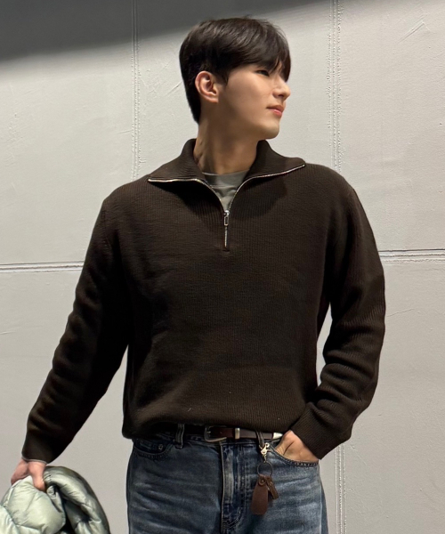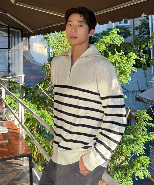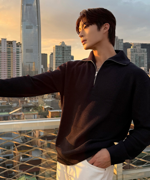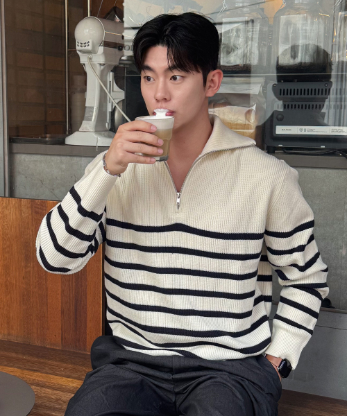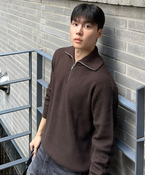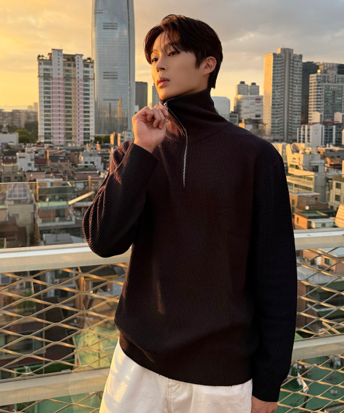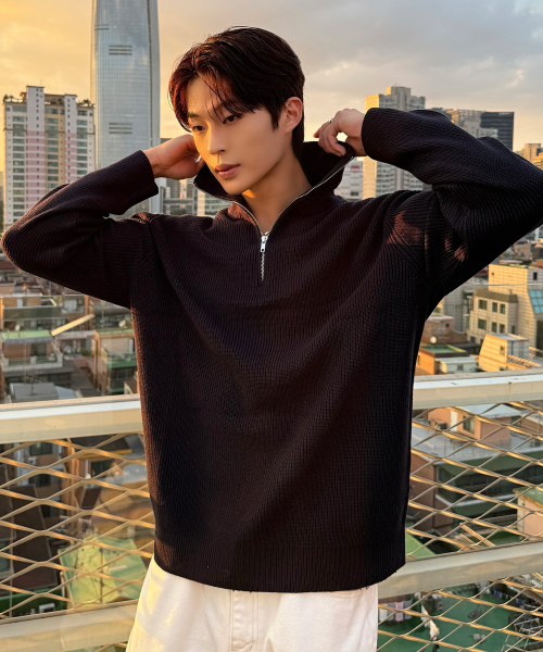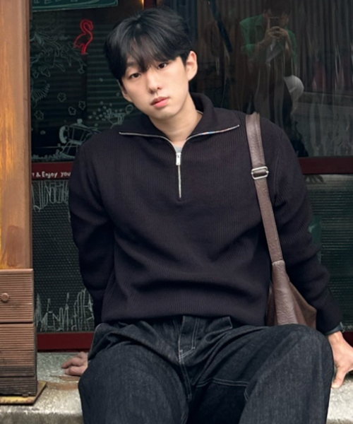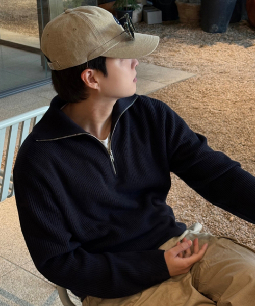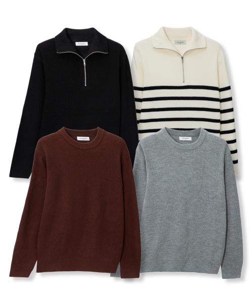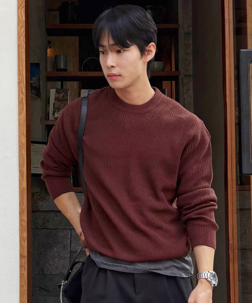 [ON]하찌 조직 헨리넥 세미 오버핏 데일리 니트 - 4color