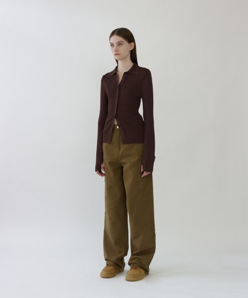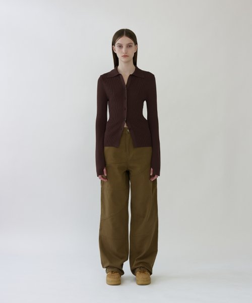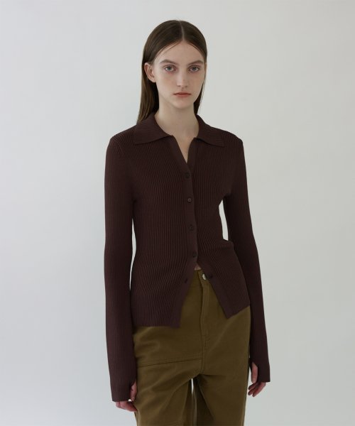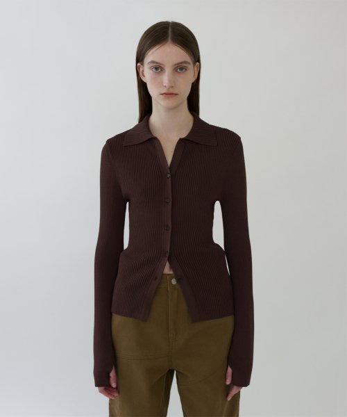 OPEN COLLAR CARDIGAN - BROWN