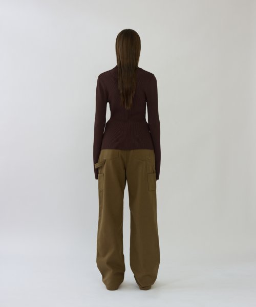 BOAT NECK TWO WAY CARDIGAN - BRICK BROWN