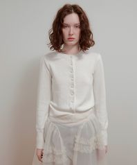 COVERED BUTTON PUFF CARDIGAN - WHITE