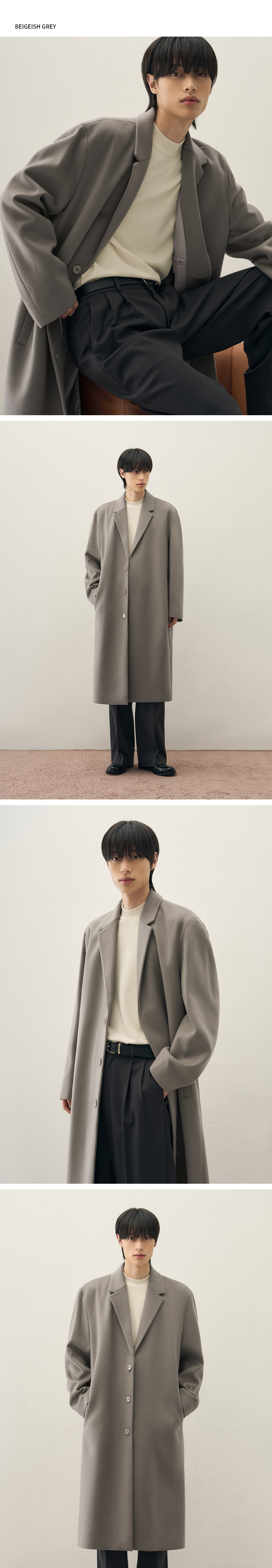 프리미어 퓨어 캐시미어 히든 싱글 코트 [BEIGEISH GREY]