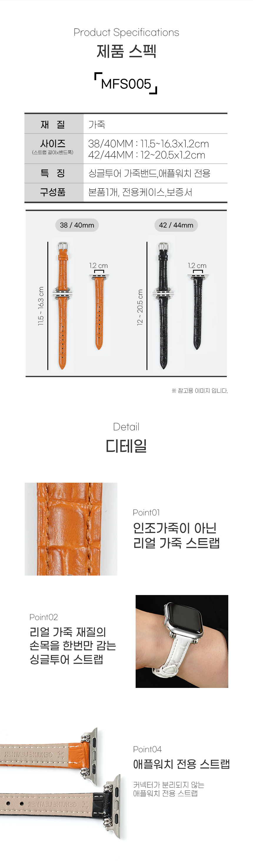 애플워치 호환 여성 슬림 솔로루프 가죽 스트랩 MFS005