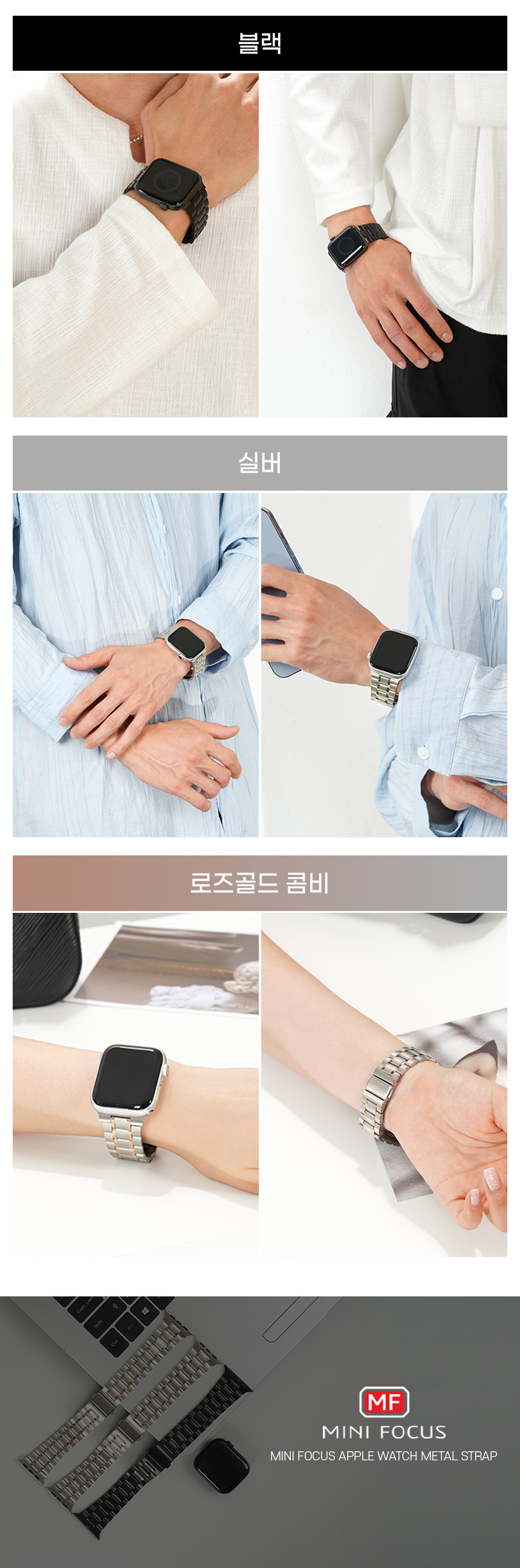 애플워치 호환 3선 콤비 메탈 스트랩 MFS008
