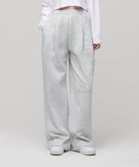 우먼즈 더블 니트 투 턱 와이드 라운지 스웨트 팬츠 [멜란지 라이트 그레이]
