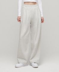 우먼즈 더블 니트 투 턱 와이드 라운지 스웨트 팬츠 [미디엄 그레이]