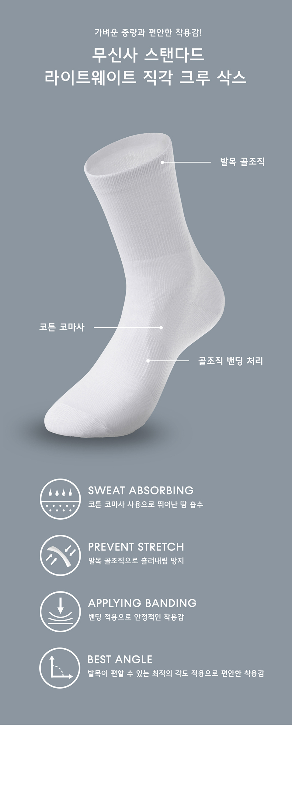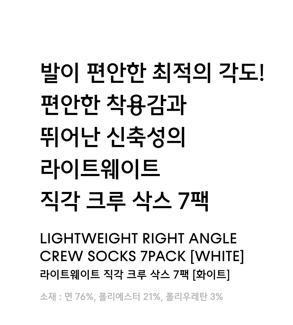 라이트웨이트 직각 크루 삭스 7팩 [화이트]