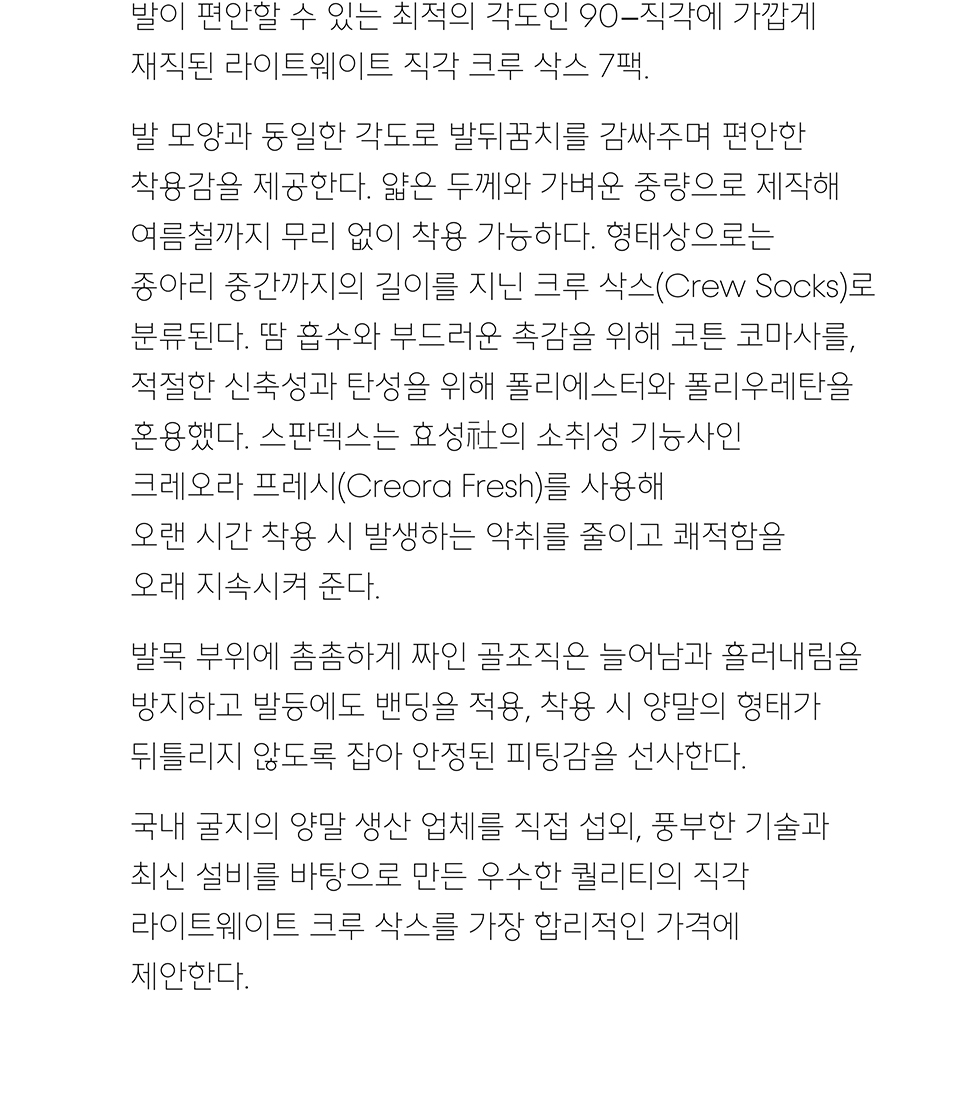 라이트웨이트 크루 삭스 7팩 [화이트]