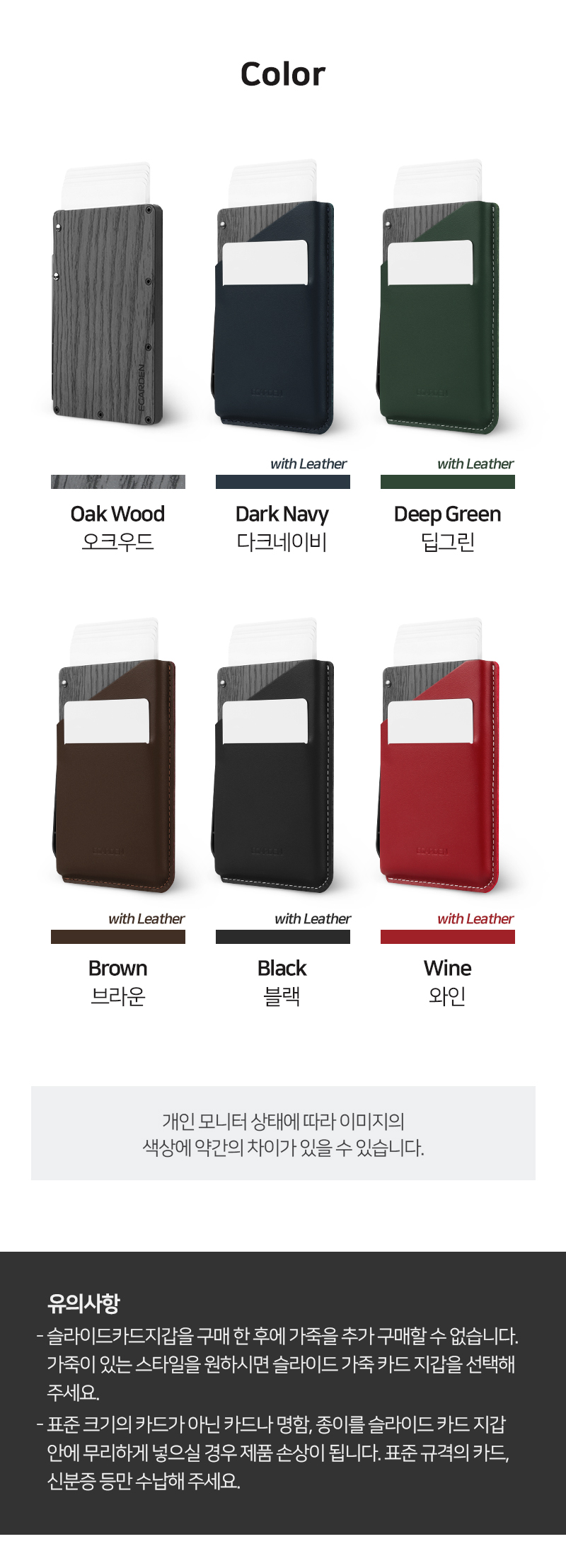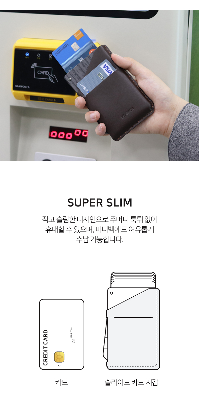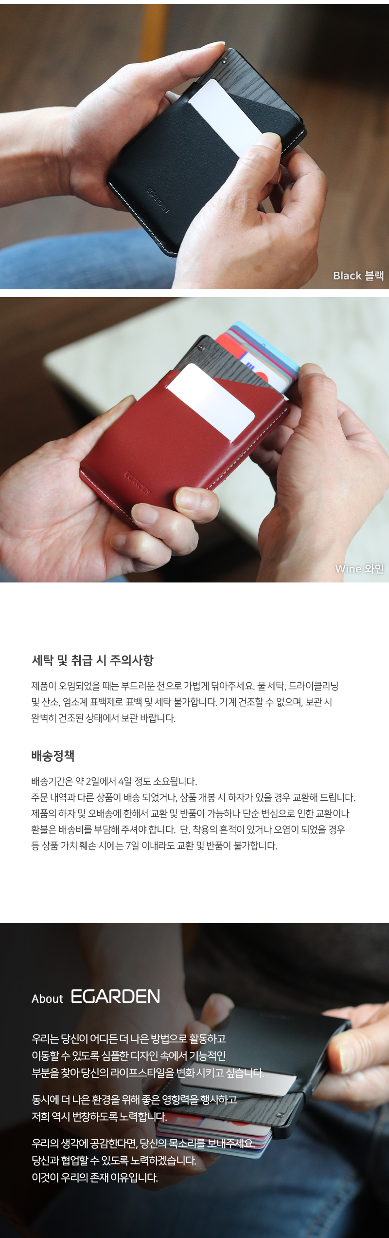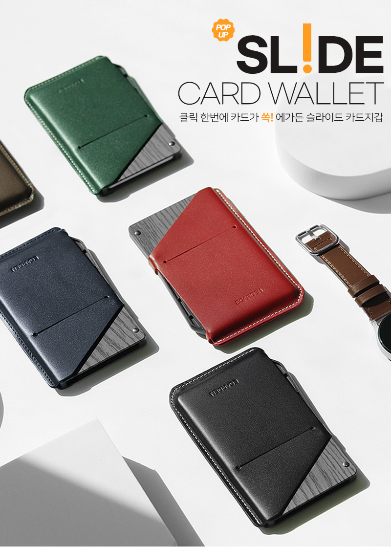 슬라이드 가죽 카드 지갑 RFID차단 와인