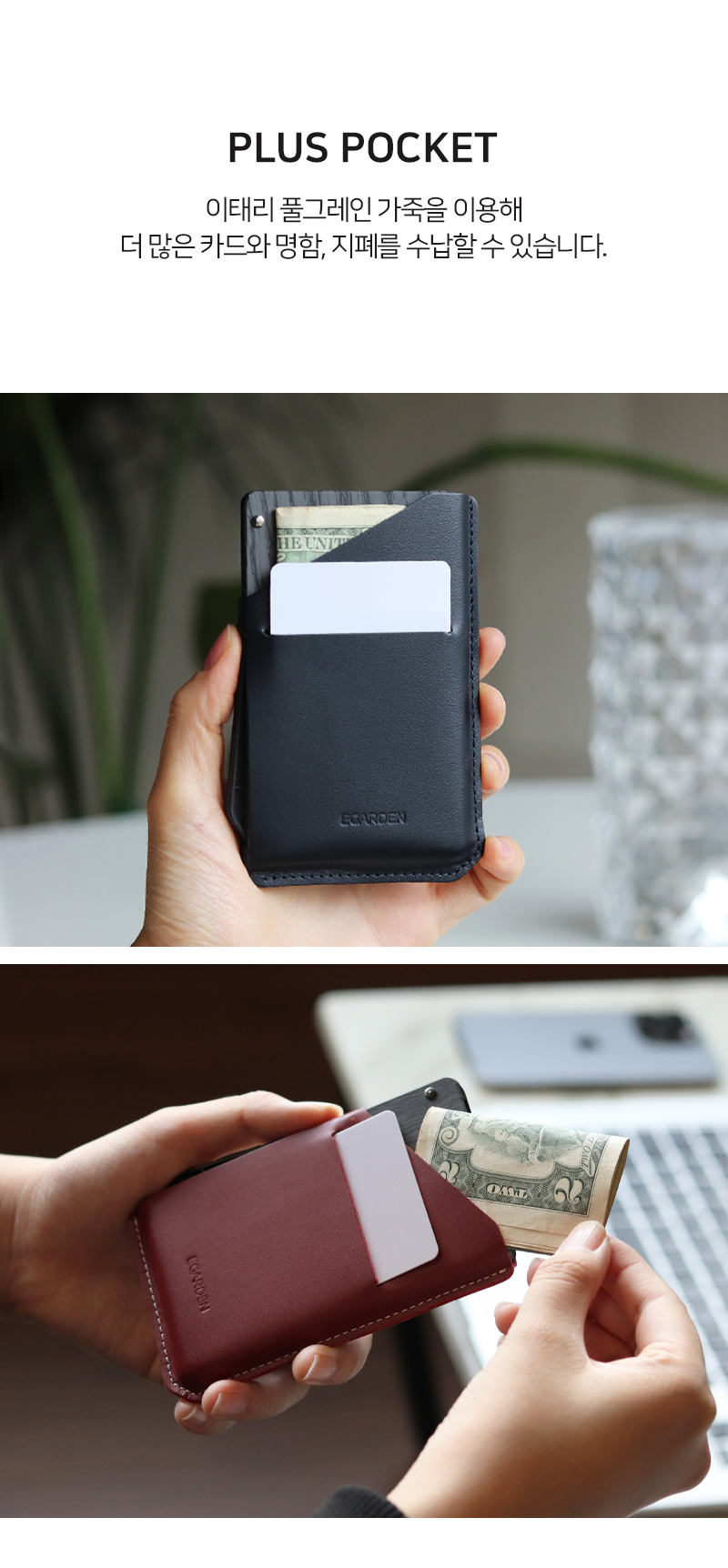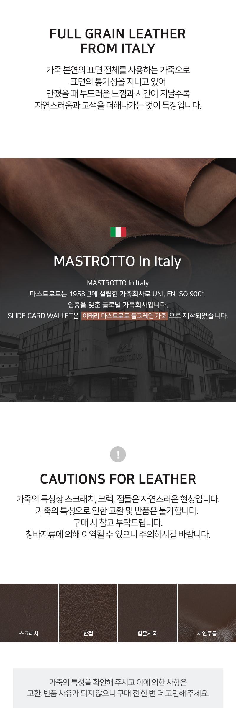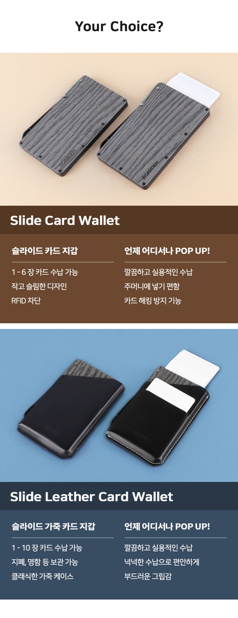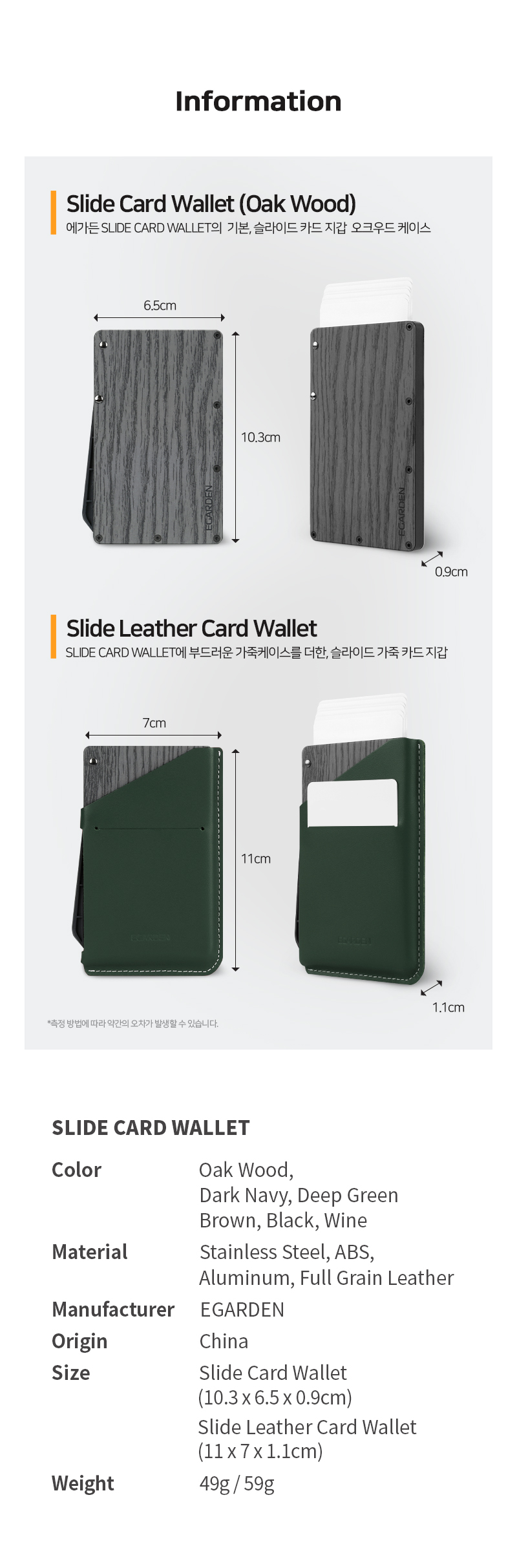 슬라이드 가죽 카드 지갑 RFID차단 와인