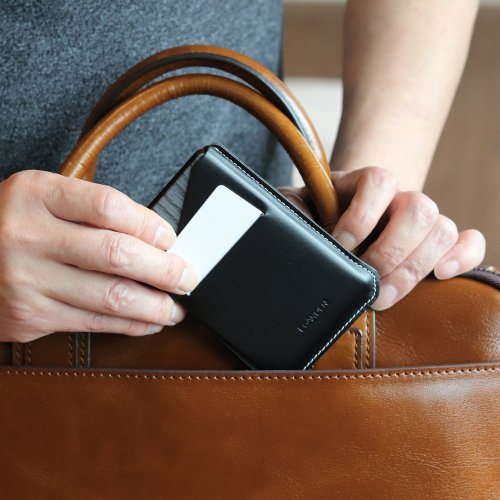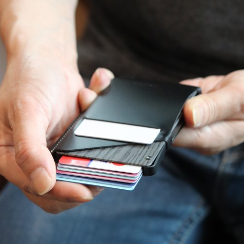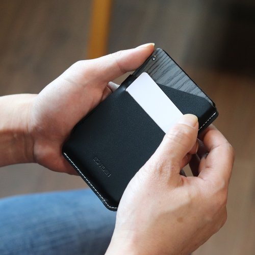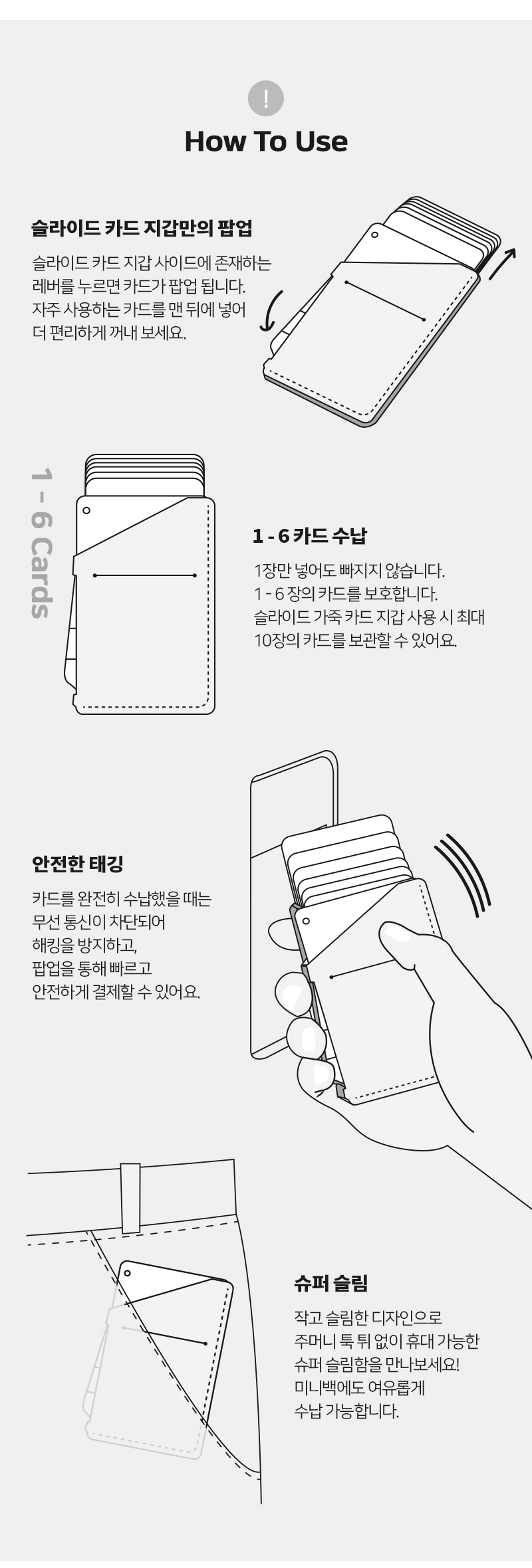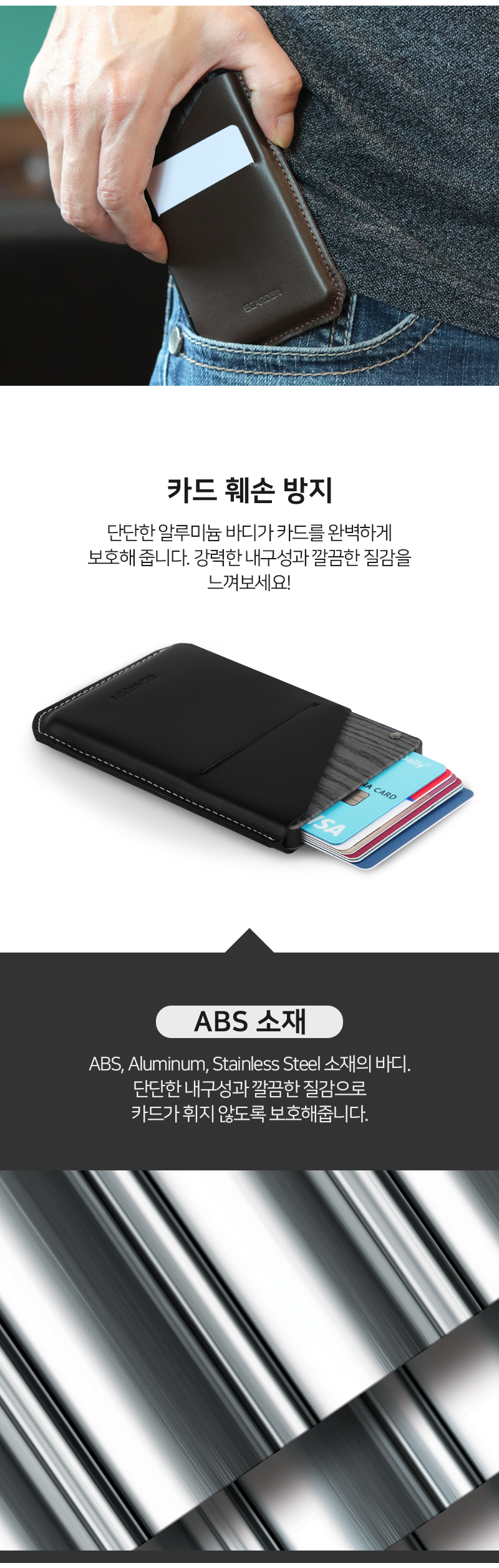 슬라이드 가죽 카드 지갑 RFID차단 블랙
