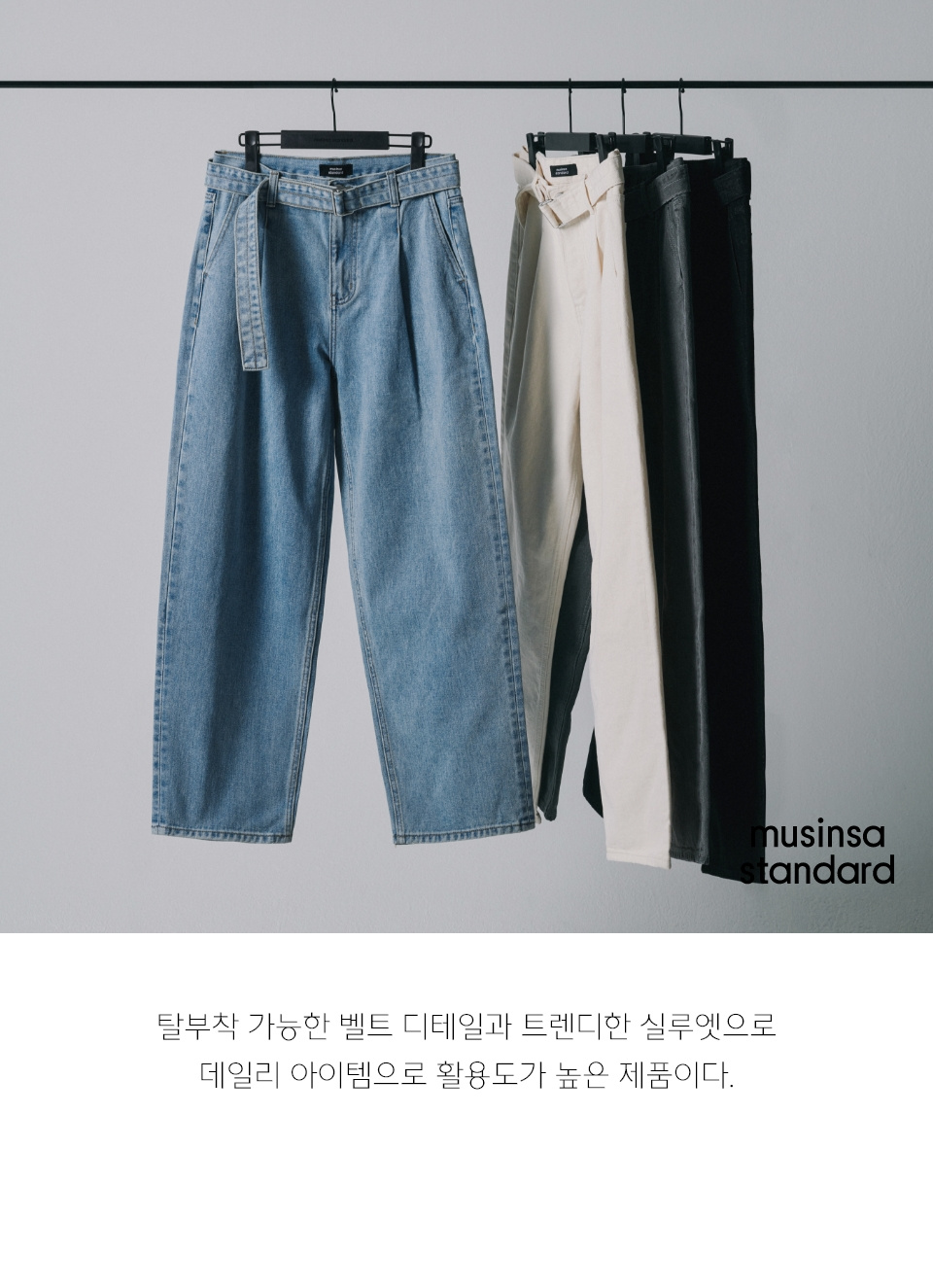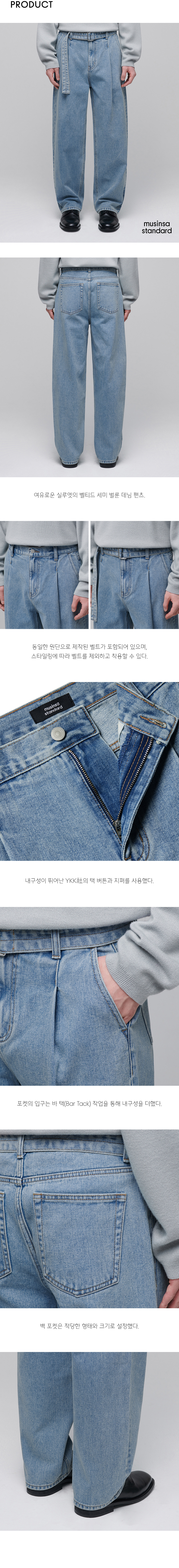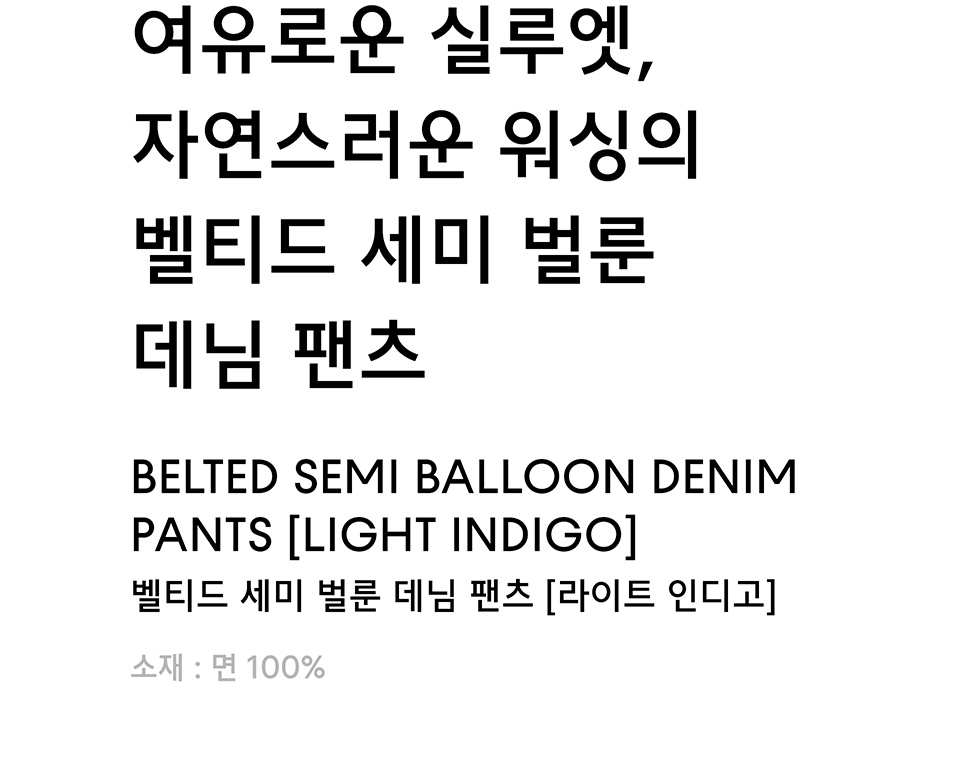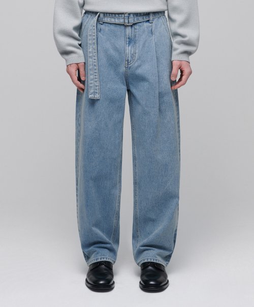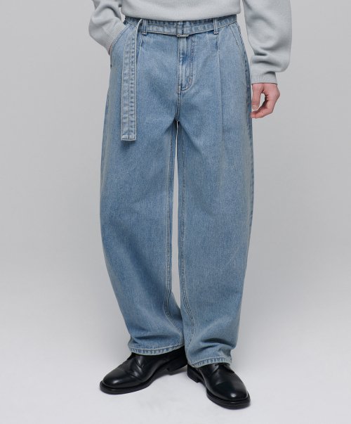 벨티드 세미 벌룬 데님 팬츠 [라이트 인디고]