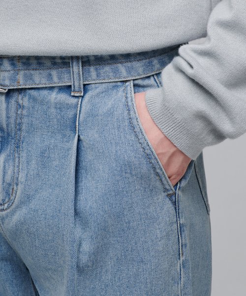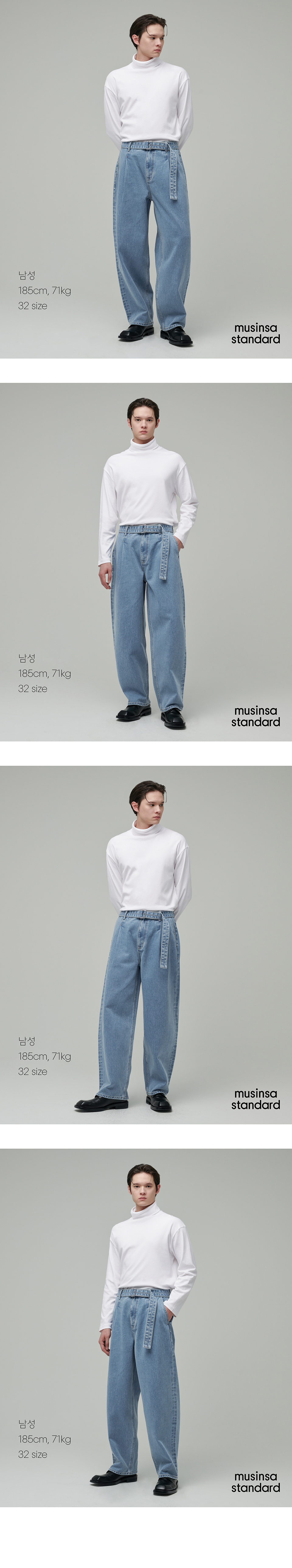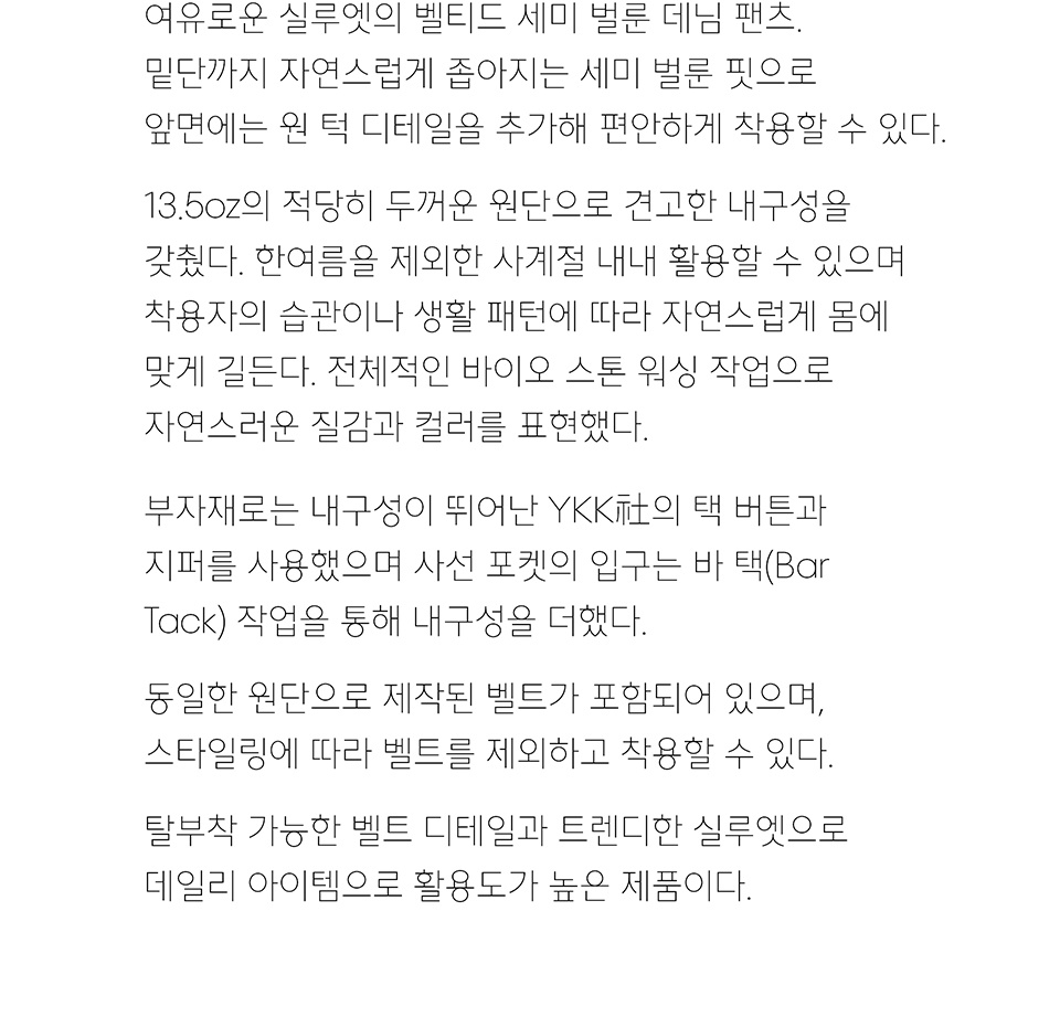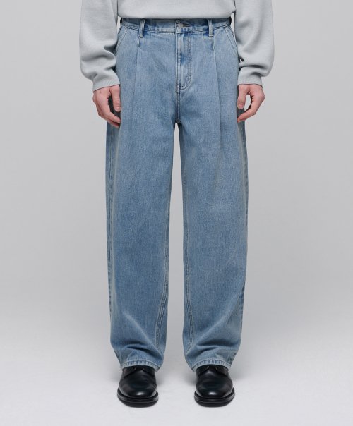 벨티드 세미 벌룬 데님 팬츠 [라이트 인디고]