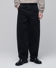 트위스트 세미 벌룬 데님 팬츠 [워시드 블랙]
