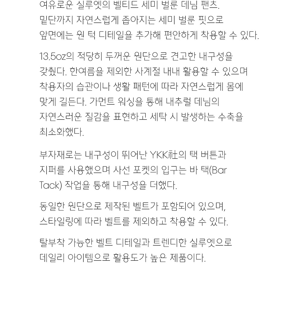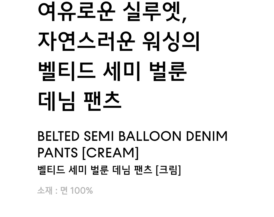 벨티드 세미 벌룬 데님 팬츠 [크림]