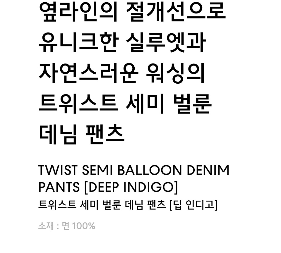 트위스트 세미 벌룬 데님 팬츠 [딥 인디고]