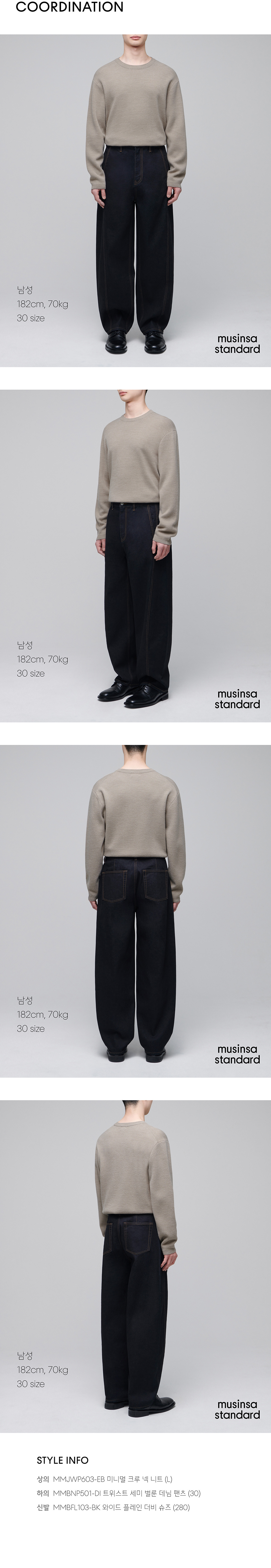 무신사 스탠다드(MUSINSA STANDARD)는 대한민국을 대표하는 온라인 패션 스토어 무신사가 전개하는 자체상표(Private Brand)이며, 모던 베이식 캐주얼웨어를 지향합니다. 단순한 유통구조의 효율적인 운영으로 좋은 품질의 제품을 합리적인 가격에 선보입니다. 가치소비 시대의 새로운 기준을 제시합니다.
