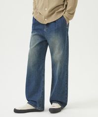 옐로우 워싱 리버스 턱 데님 팬츠 (DEEP BLUE)